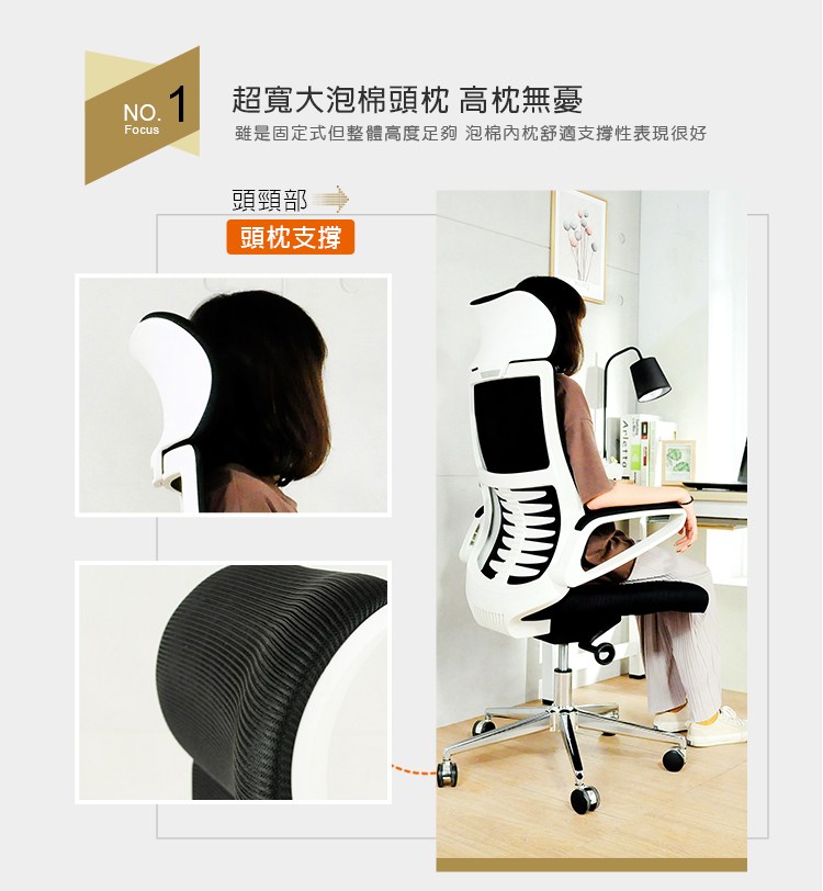 ◆人體工學高背符人體曲線,魚骨腰靠能舒適完整支撐腰背