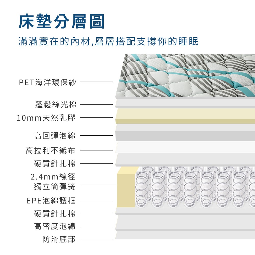【obis】Mermaid海洋再生環保紗乳膠硬式獨立筒床墊單加3.5尺