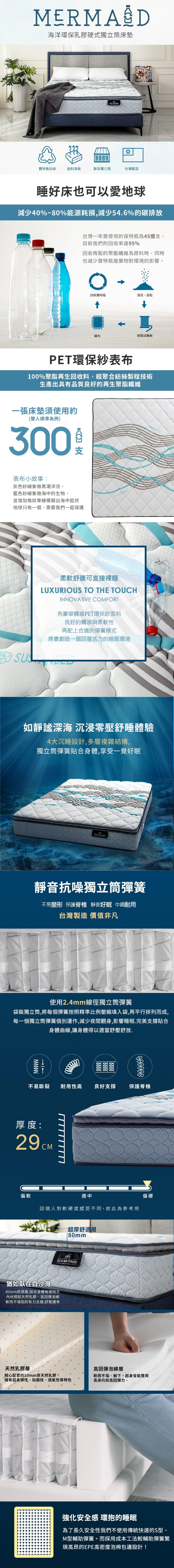 【obis】Mermaid海洋再生環保紗乳膠硬式獨立筒床墊雙特6×7尺