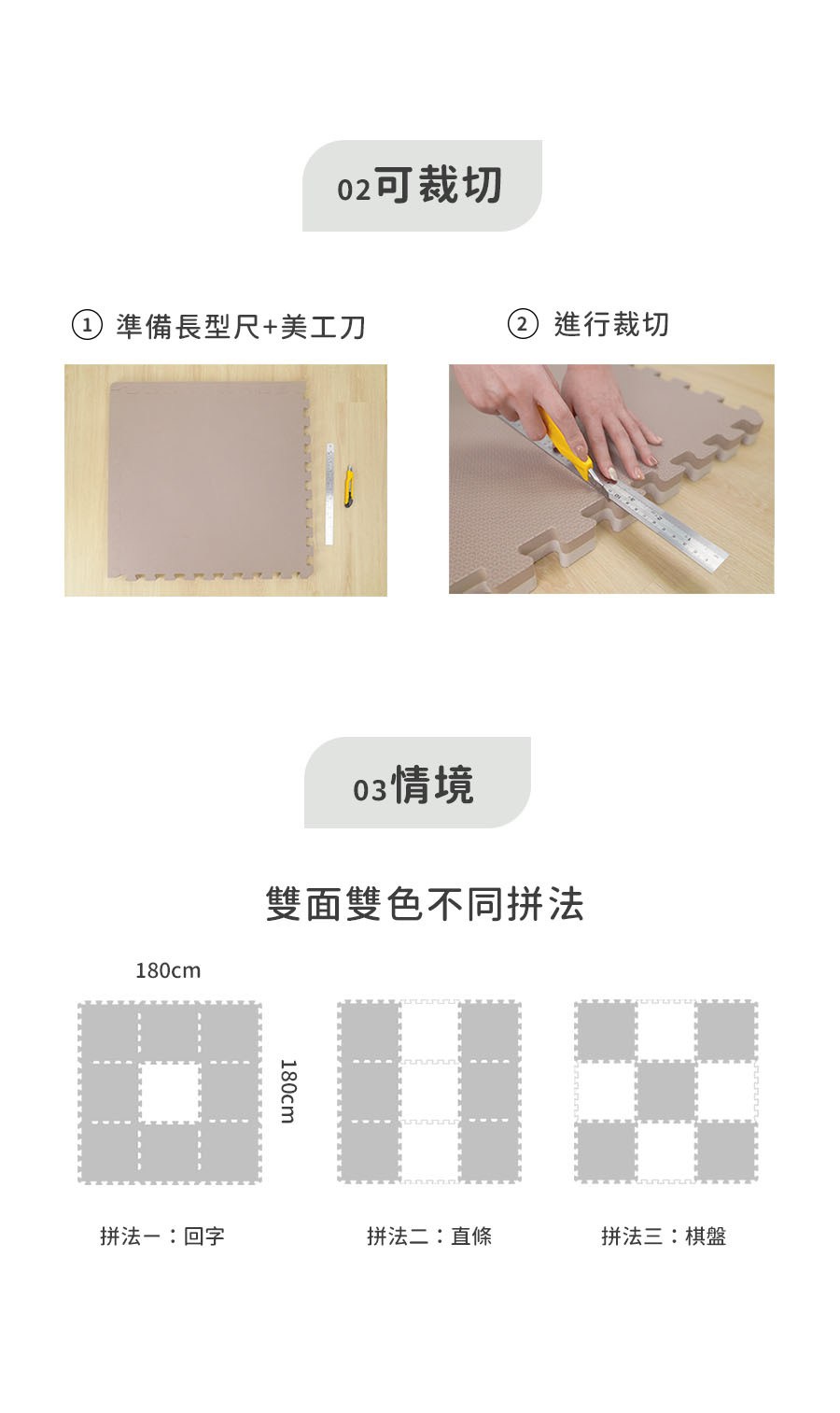 因為地墊為發泡產品,厚度較厚拼接過程容易有拉扯,