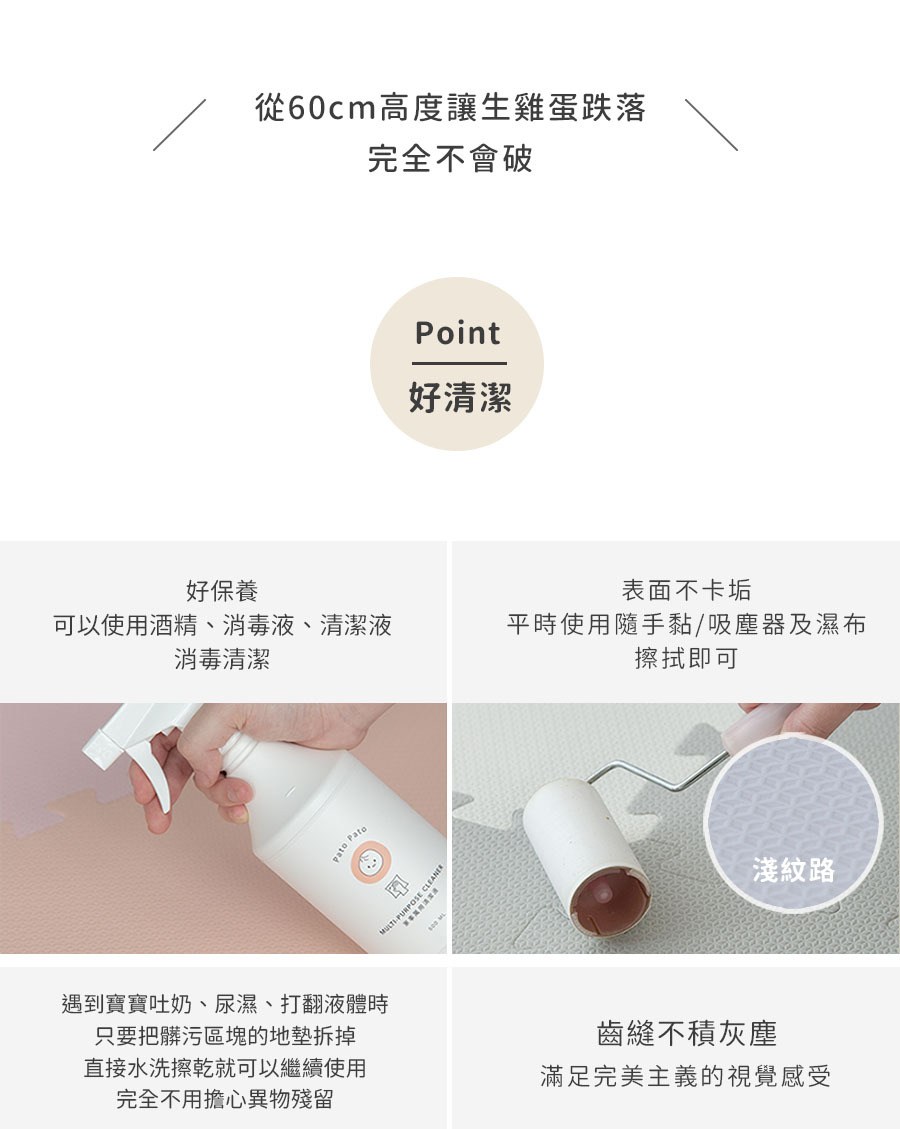 我們的地墊改良的拼接齒相當緊密,灰塵不太會透過接縫滲透,