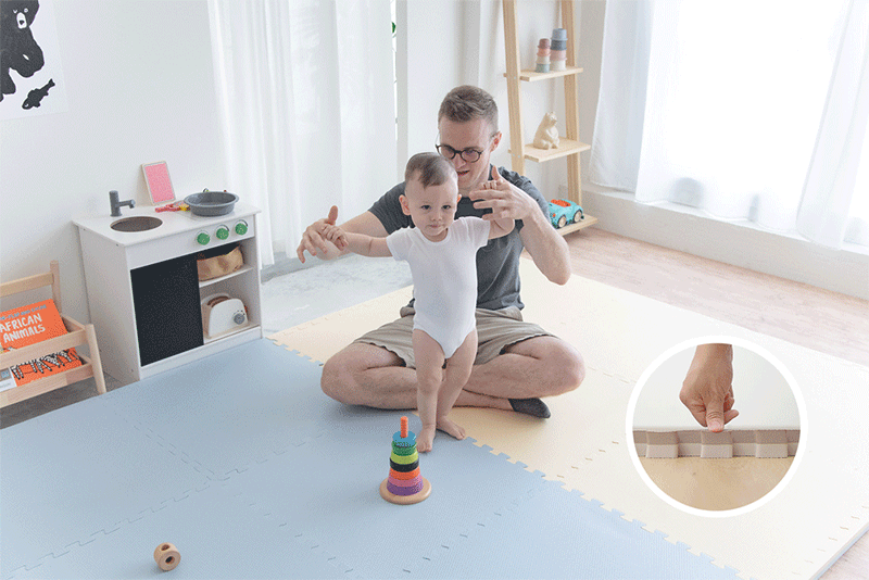 因為地墊為發泡產品,厚度較厚拼接過程容易有拉扯,