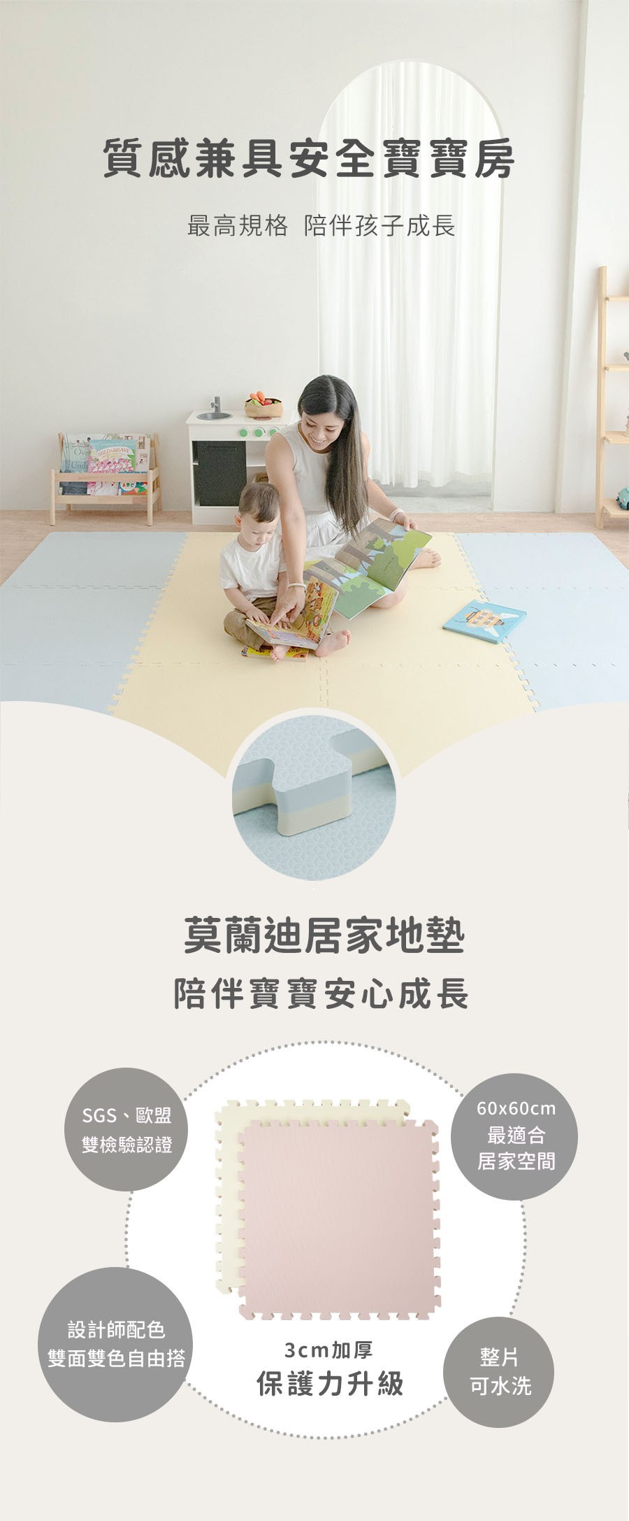 我們的地墊為環保EVA樹脂發泡,製程中不會添加與塑化劑相關的材料,並由SGS、全國公證等單位檢驗,