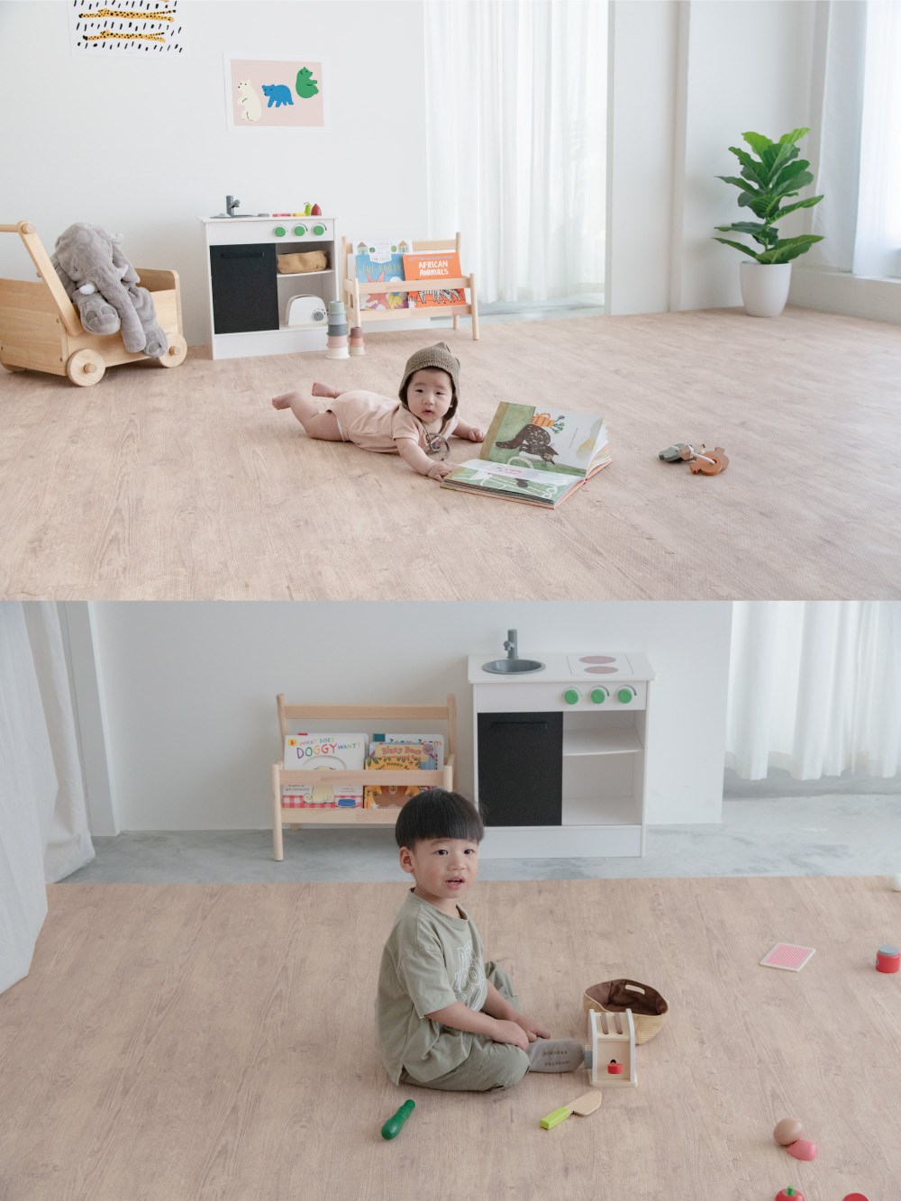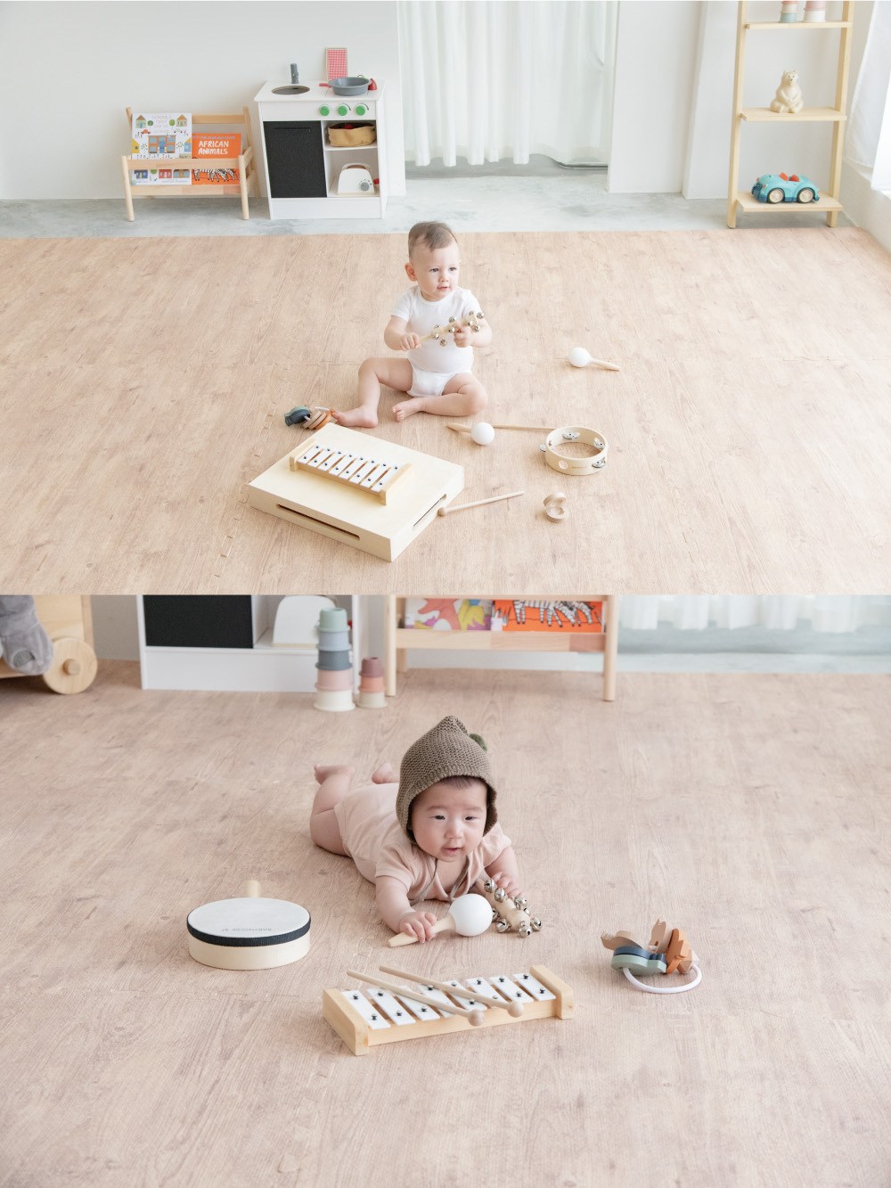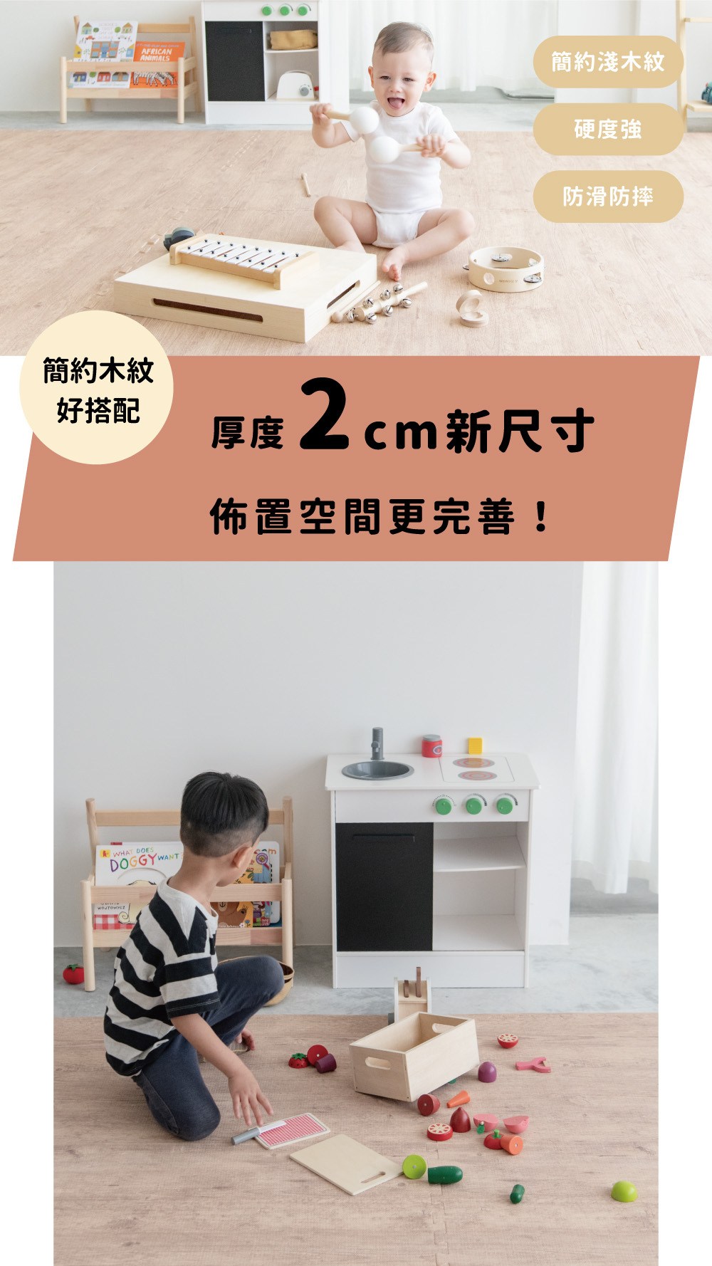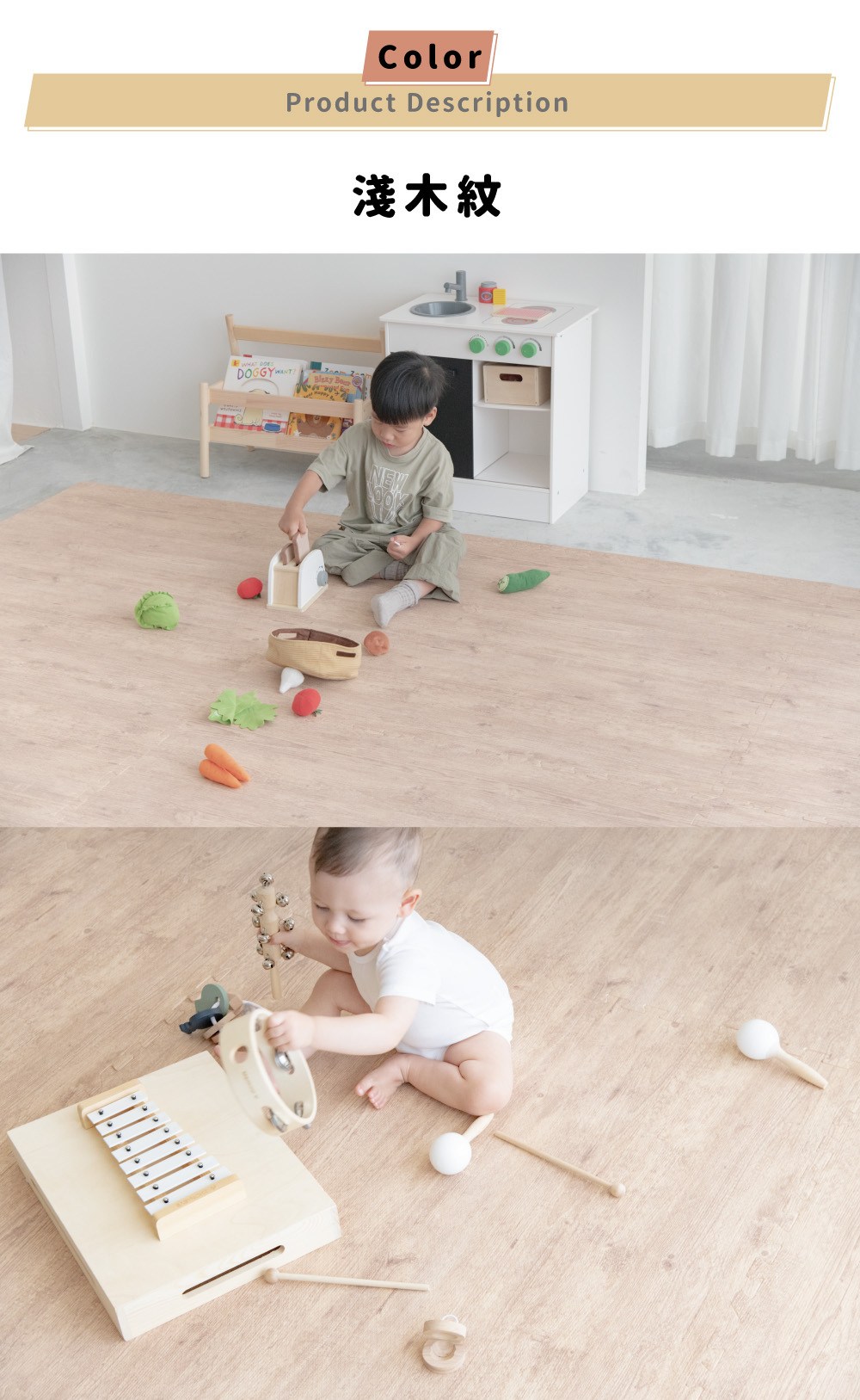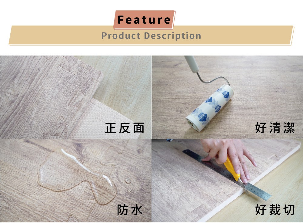 Pato.Pato - 自然系居家木紋色地墊-淺木紋 (50x50x2cm)-1包4片 (附贈邊條x8)