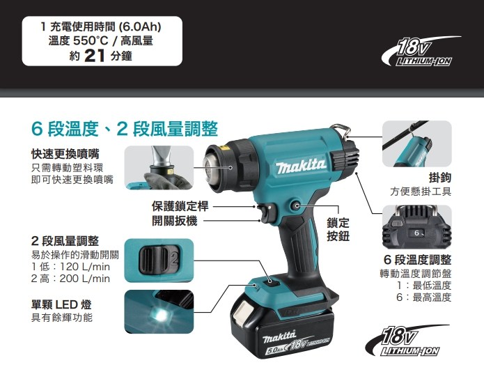 MAKITA牧田 DHG181ZK 18V充電式熱風槍(單主機 無電池 無充電器)