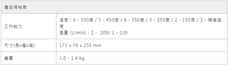 附件:主機*1、玻璃用噴嘴*1、寬口扁噴嘴*1、管狀反射用噴嘴*1、20mm小口徑噴嘴*1