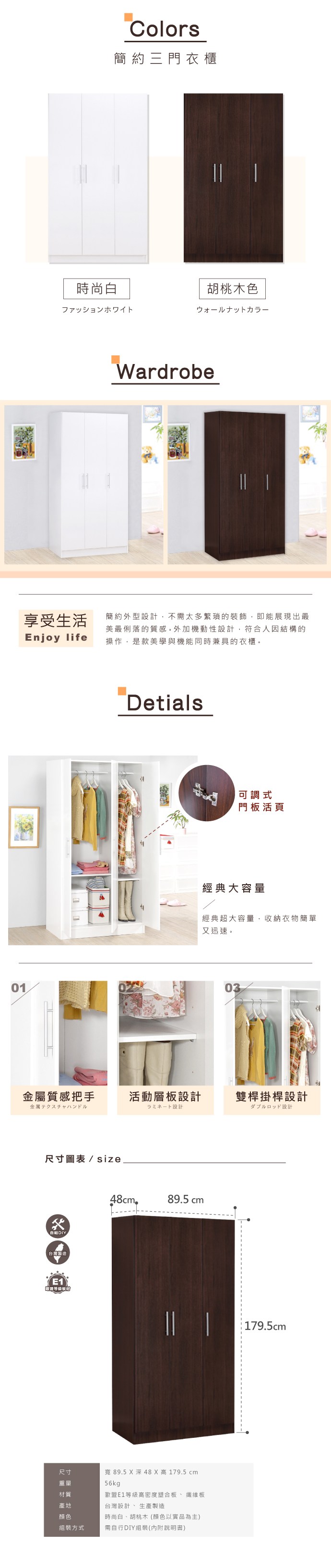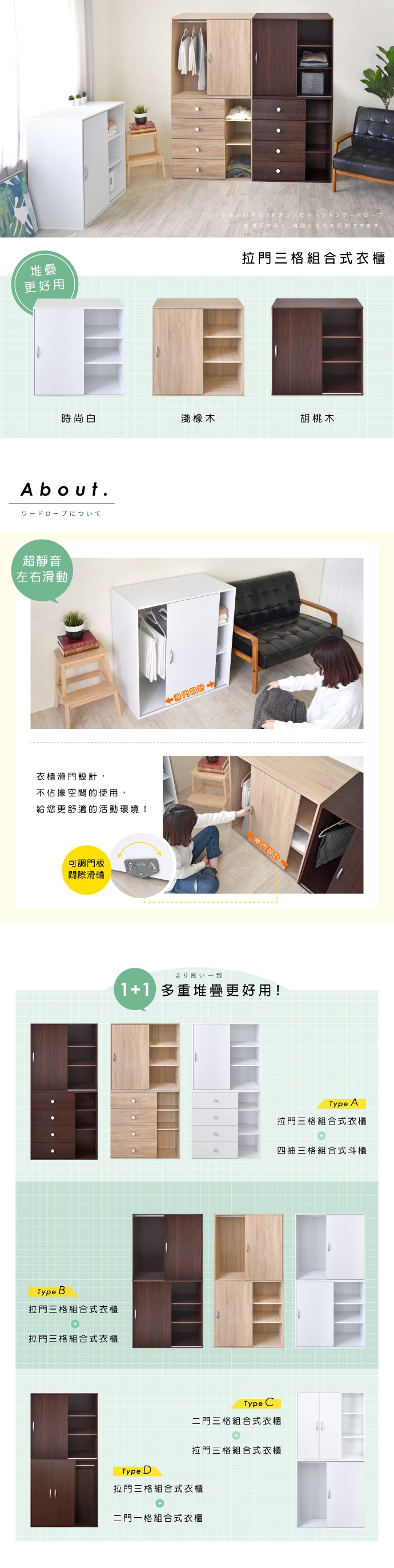 點我下載《HOPMA》簡約滑門衣斗櫃組合 台灣製造-時尚白
