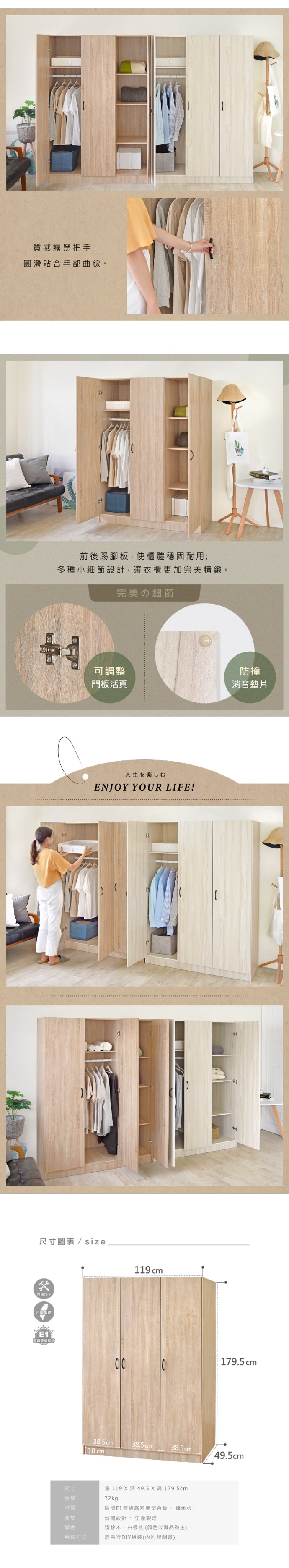《HOPMA》美背和風四門二抽衣櫃 台灣製造 衣櫥 抽屜櫃 衣物收納櫃-拼版柚木