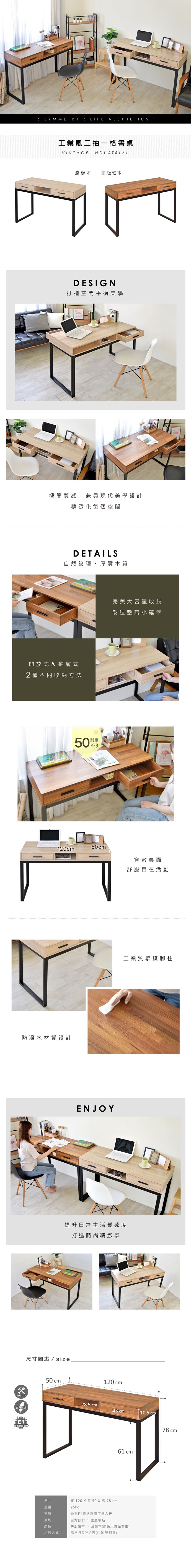 【Homelike】喜家居雪杉色2.7尺二抽書桌(2504)