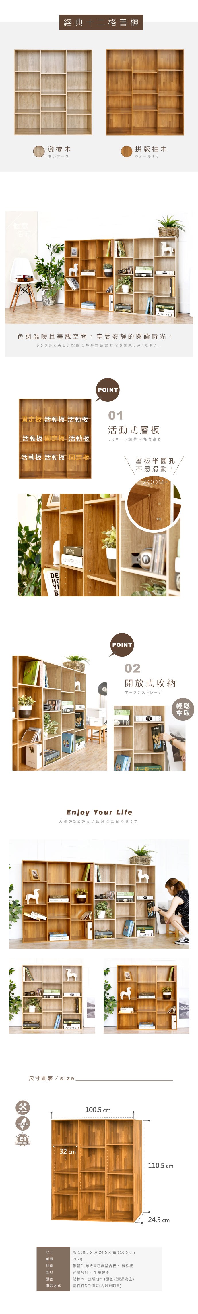 TZUMii樂活12格大書櫃/收納櫃/置物櫃/展示櫃/隔間櫃/開放式書櫃