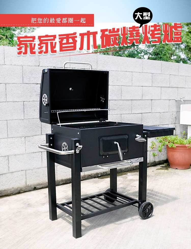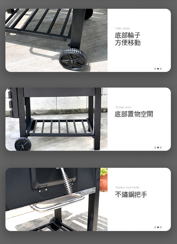 四、前置式加碳門,使用方便更安全 為了滿足長時間燒烤,中途更方便添加燃料 烤爐爐體正面加入,直接加入燒烤碳