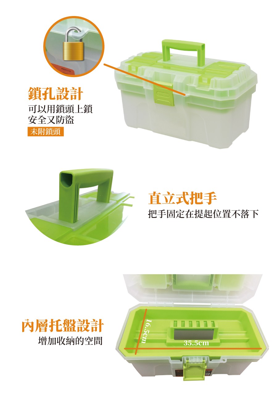 TACTIX TX-0110 16英吋輕巧多色工具箱(多色可選)柑橘色