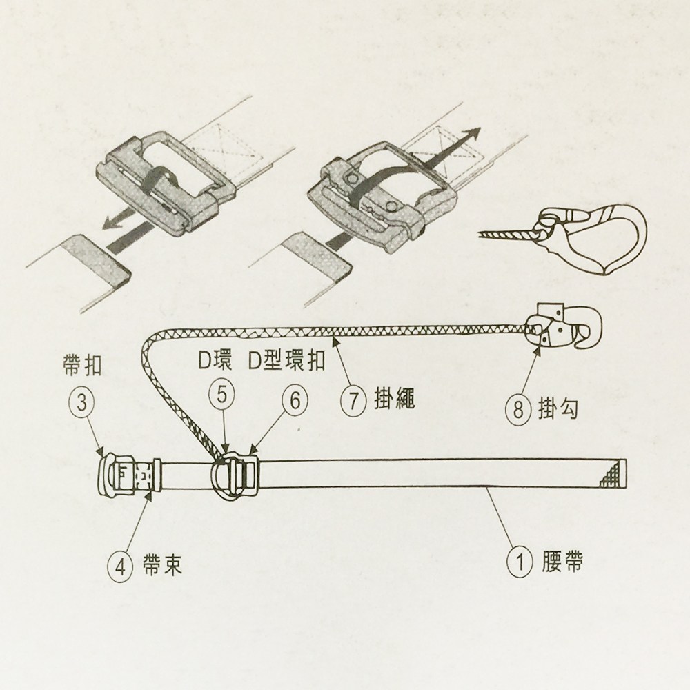 (2)配戴安全帶時,腰部之位置盡量不要高出安全帶掛索前端之安裝位置。