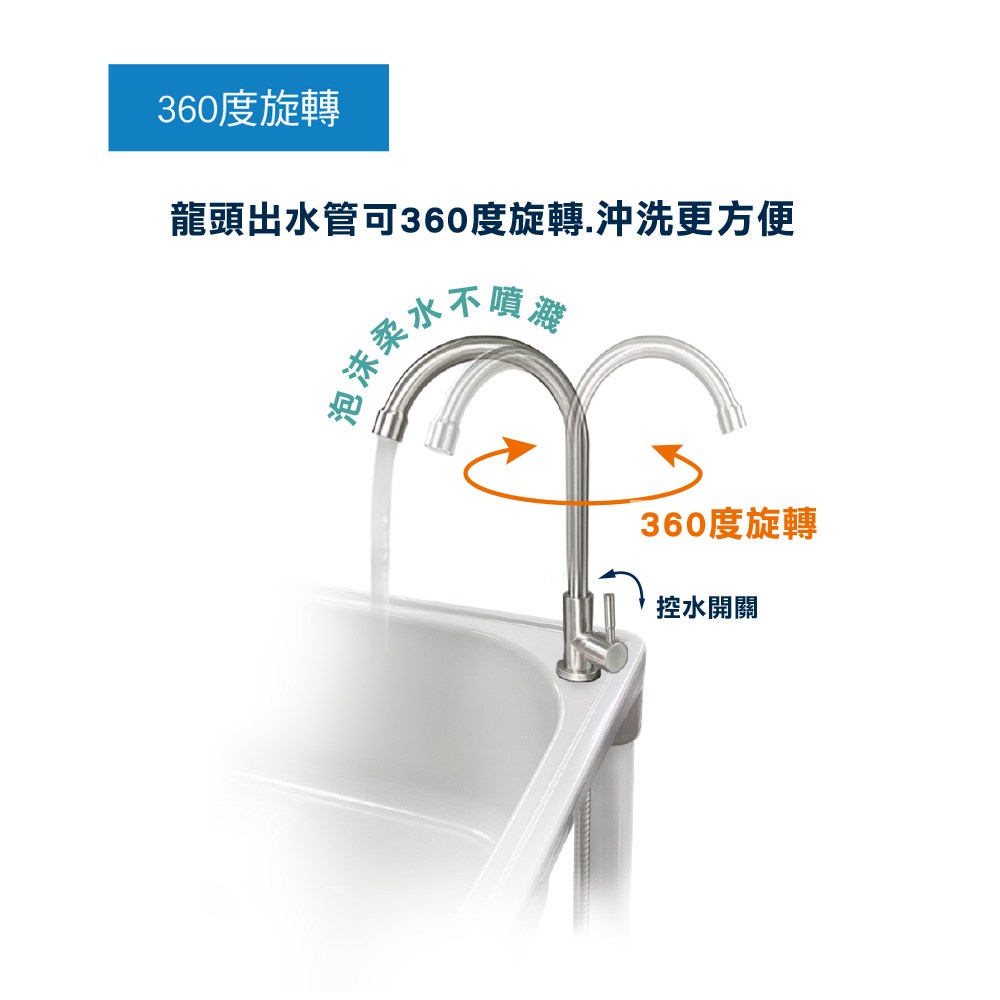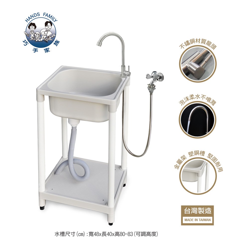 LOMOS 小型塑鋼水槽 不鏽鋼腳架 附單冷萬向水龍頭及軟管組 F48S-C21B