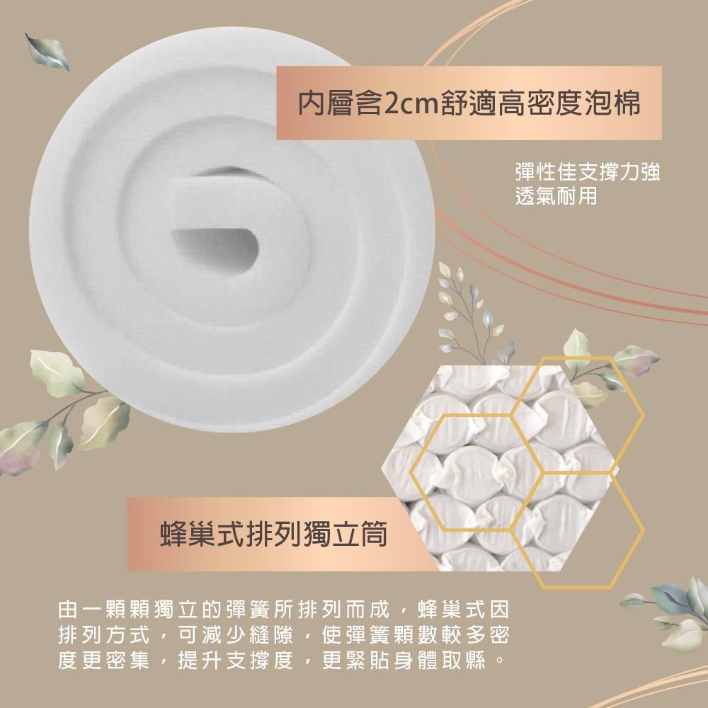 【藤原傢俬】防螨抗菌豆腐蜂巢式獨立筒床墊單人加大(3.5尺)3H-3