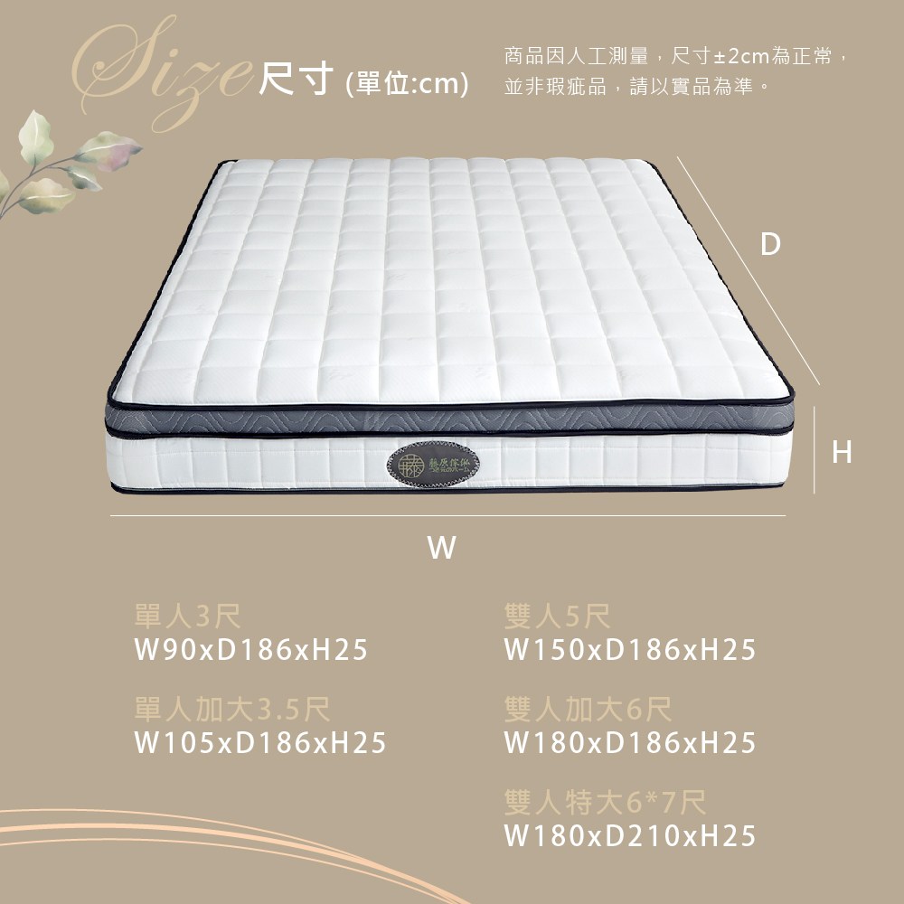 【藤原傢俬】防螨抗菌豆腐蜂巢式獨立筒床墊雙人特大(6X7尺)3H-3