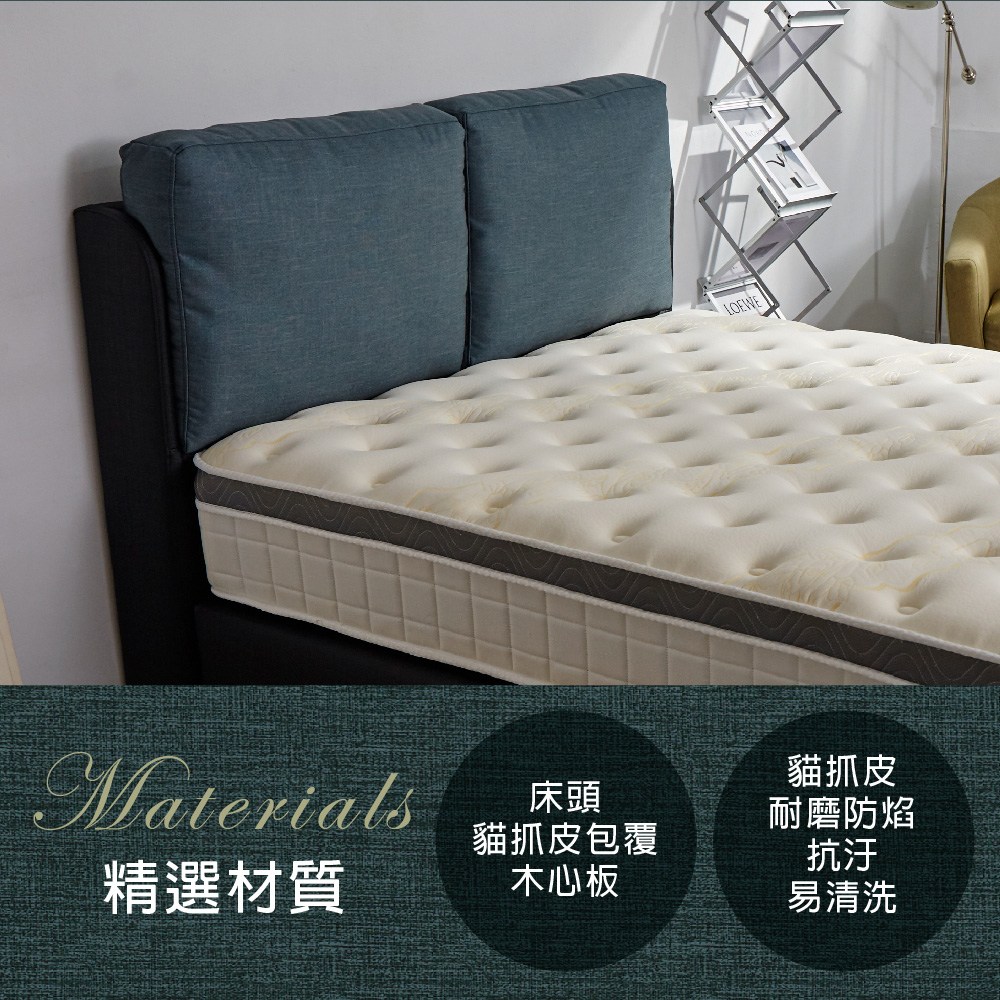 【藤原傢俬】維多利亞貓抓皮床頭雙人加大(6尺)藍灰色