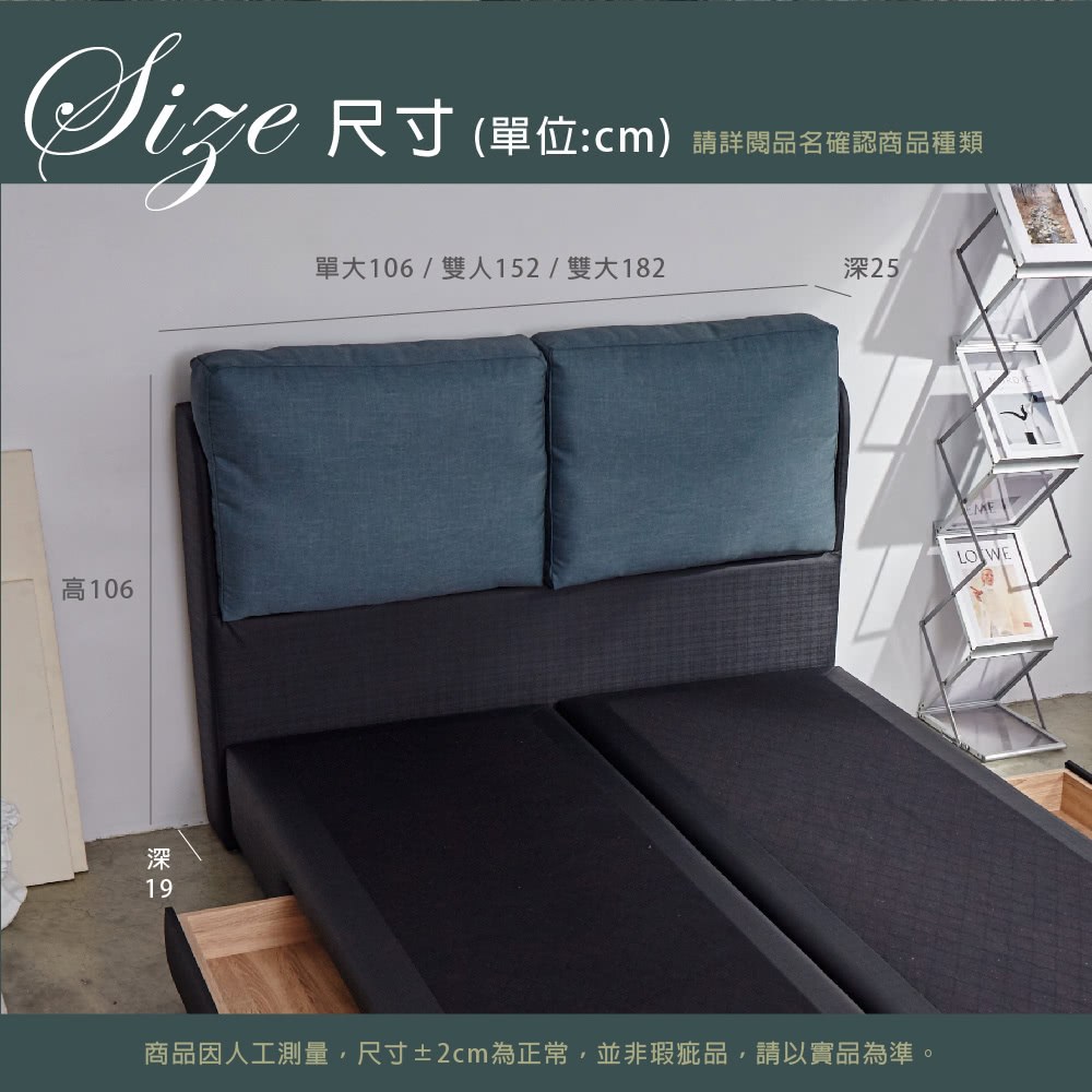 WAKUHOME 瓦酷家具Molly日系無印風三抽3.5尺床箱型2件組(床頭箱+床底)-寬106.3*深201.7*高100cm