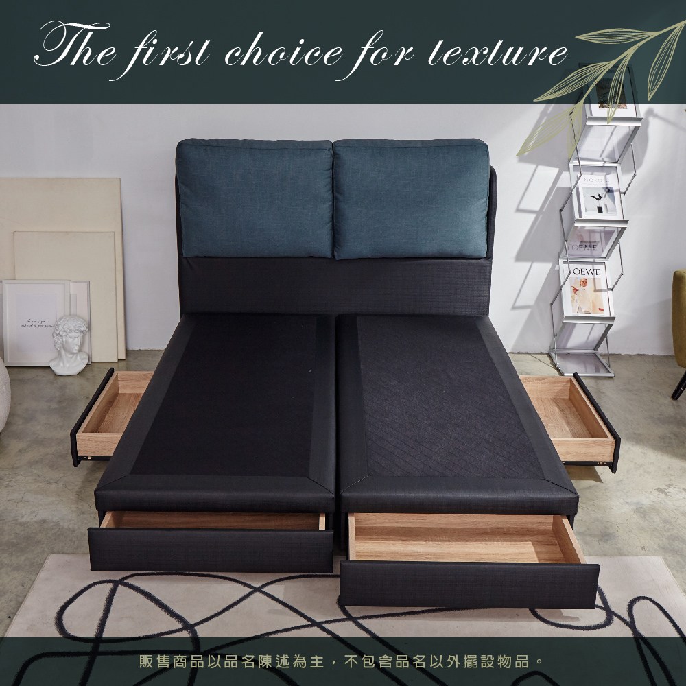 【藤原傢俬】維多利亞貓抓皮大四抽床底雙人加大(6尺)藍灰色