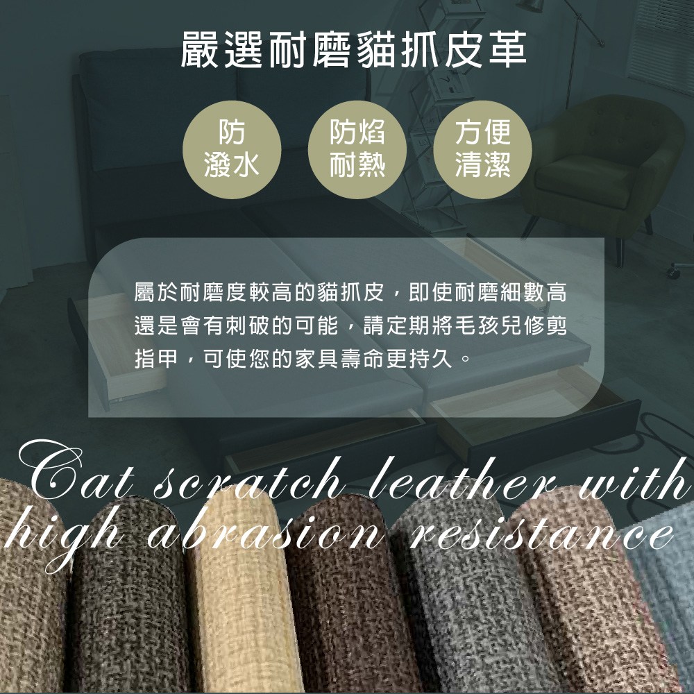 【藤原傢俬】維多利亞貓抓皮大二抽床底單人加大(3.5尺)灰綠色