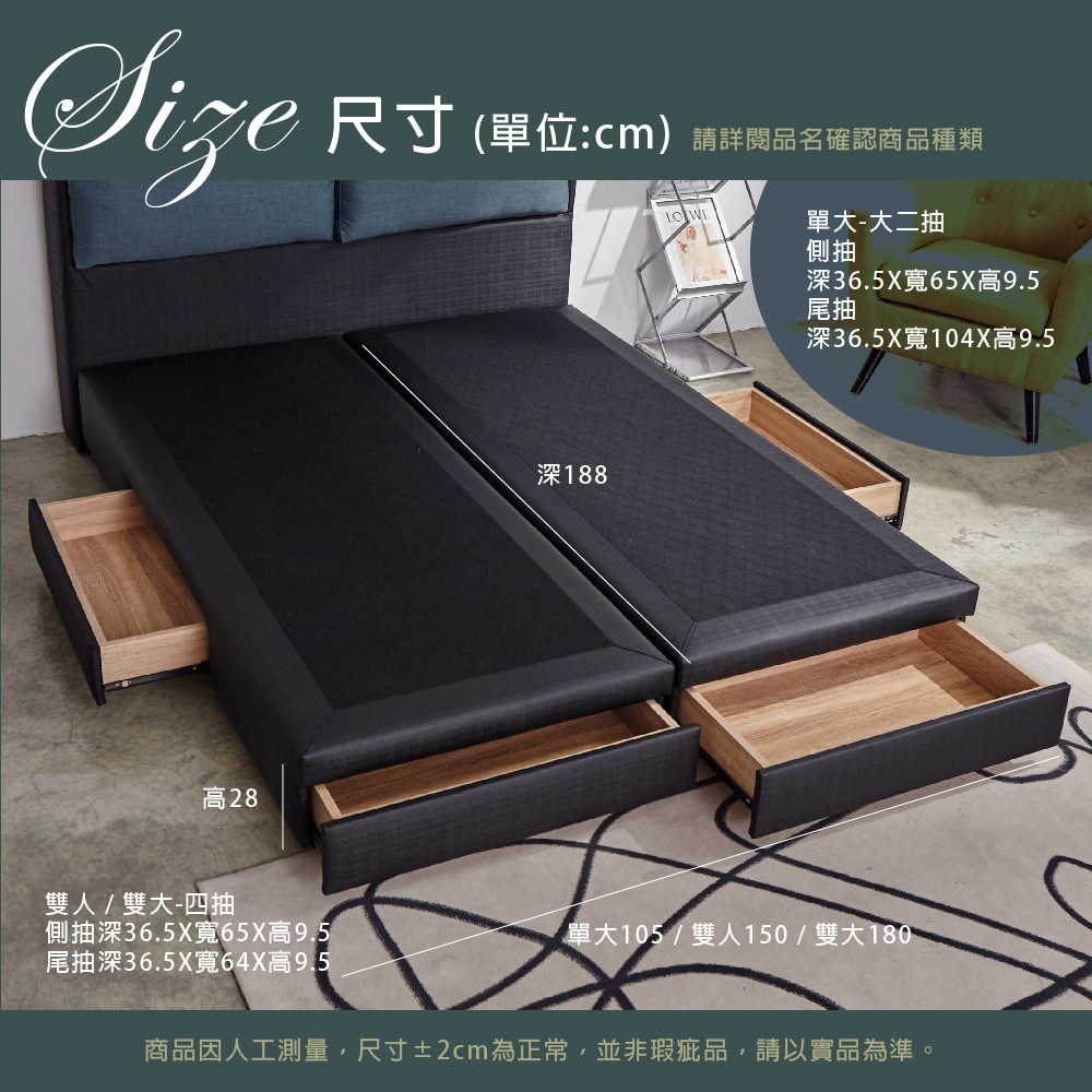 AS雅司-松樂5尺四抽收納床底-152x188x26cm--只有床底