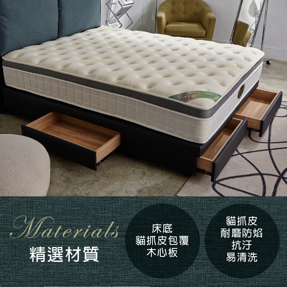 IHouse-半月貓耳朵 雙大6尺(貓抓皮床頭片+收納抽屜底)-房間兩件組/床組奶杏仁#627-02