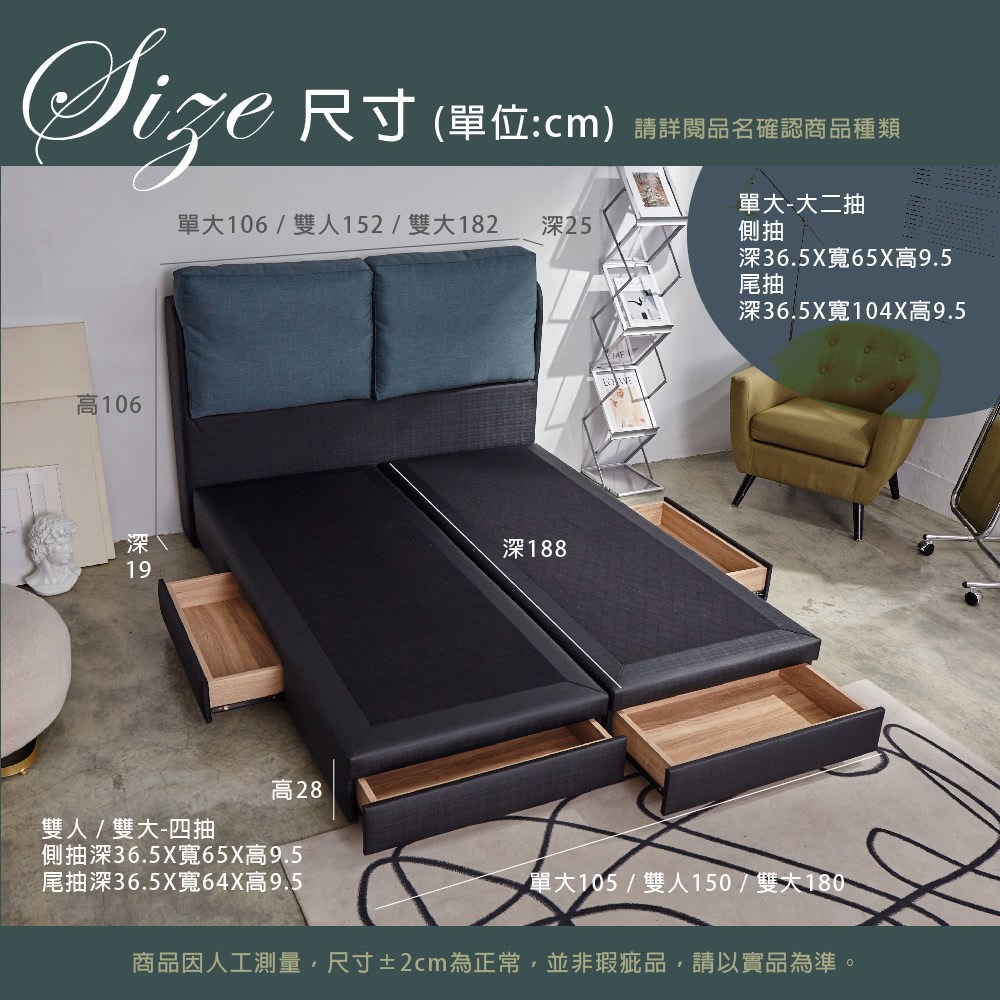 AS雅司-松樂5尺四抽收納床底-152x188x26cm--只有床底