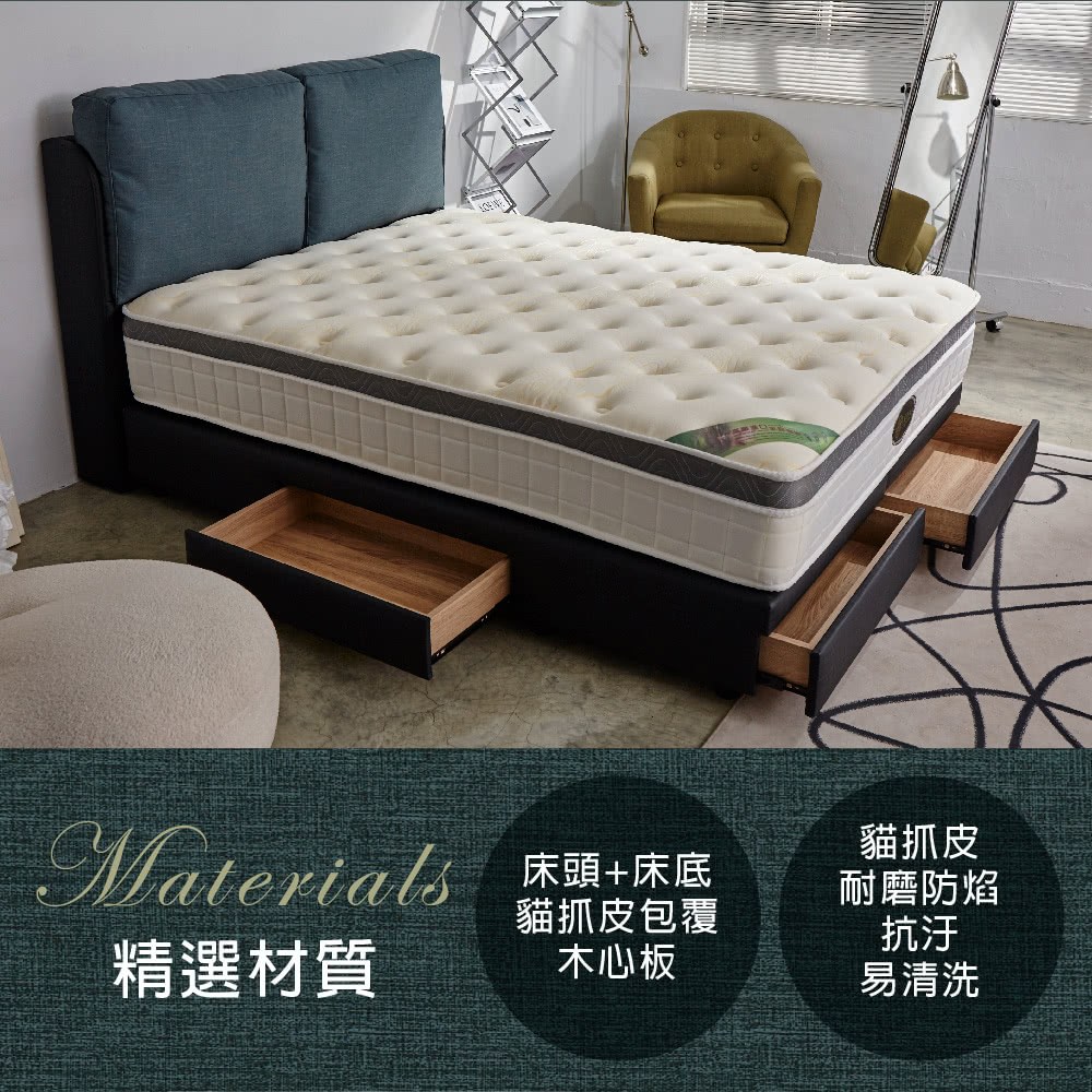 IHouse-半月貓耳朵 雙大6尺(貓抓皮床頭片+收納抽屜底)-房間兩件組/床組奶杏仁#627-02