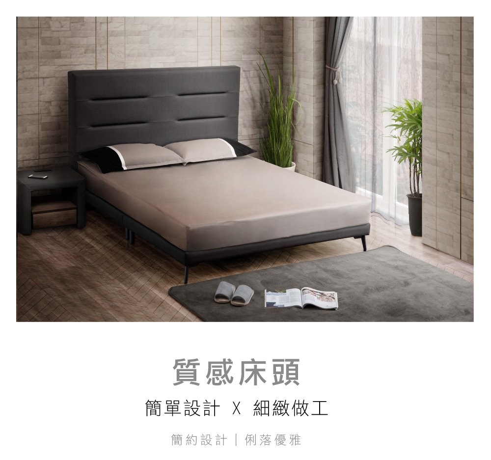 IHouse-修傑凱 簡約 貓抓皮床頭片 雙人5尺鐵灰色#707-01