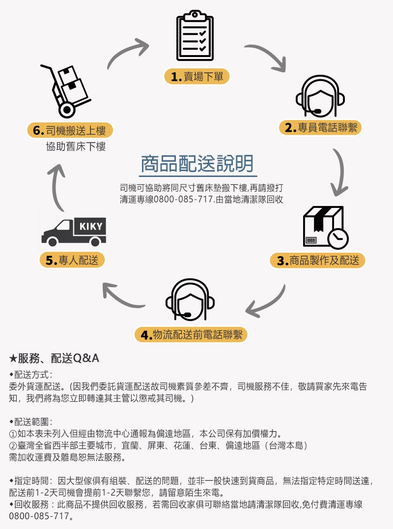 ★指定時間:因大型傢俱有組裝、配送的問題,並非一般快速到貨商品,無法指定特定時間送達,配送前1-2天司機會提前1-2天聯繫您,請留意陌生來電。