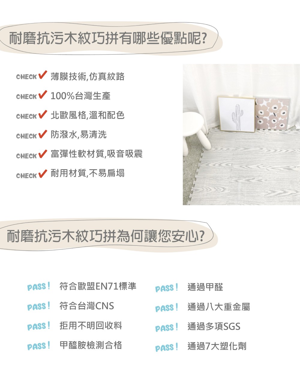 打開包裝時,若有輕微異味產生為正常現象,屬EVA材質本身氣味,待通風後可迅速消散, 請安心使用。