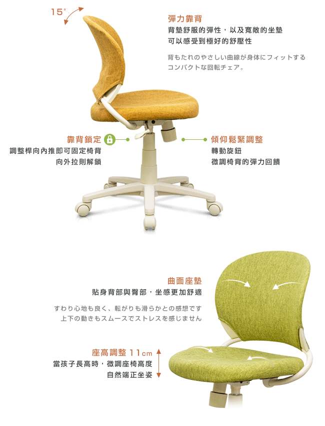 ◆ 微調座高與座深,坐感舒適