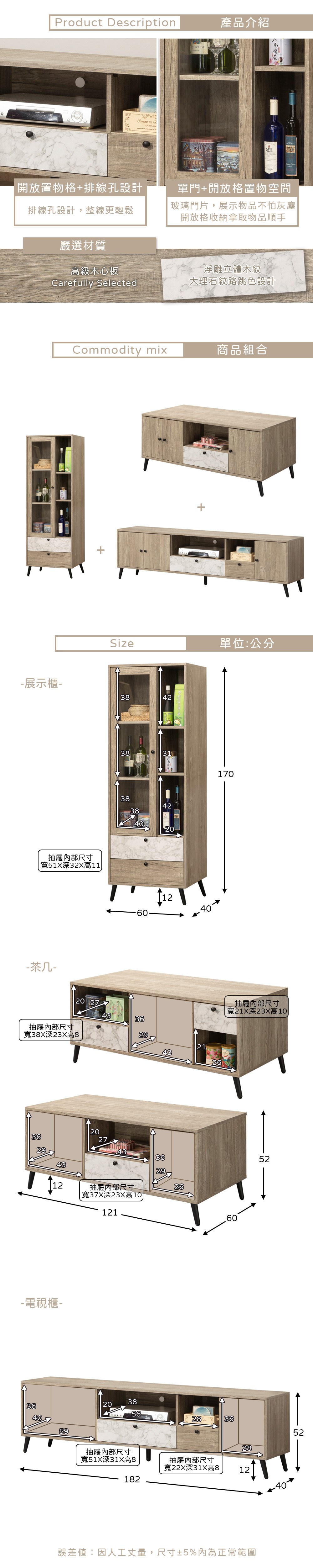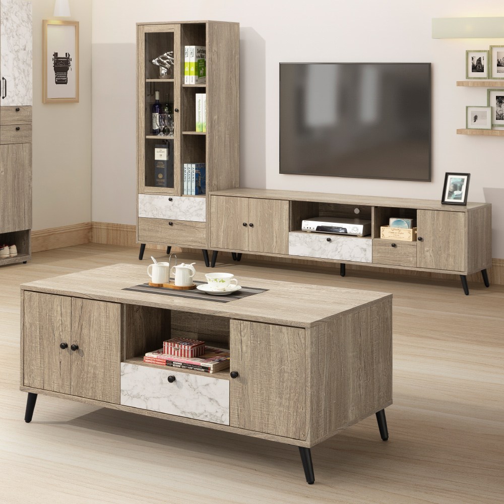 Homelike 喜家居客廳三件組(6尺電視櫃+2尺玻璃櫃+4尺茶几)(2209)