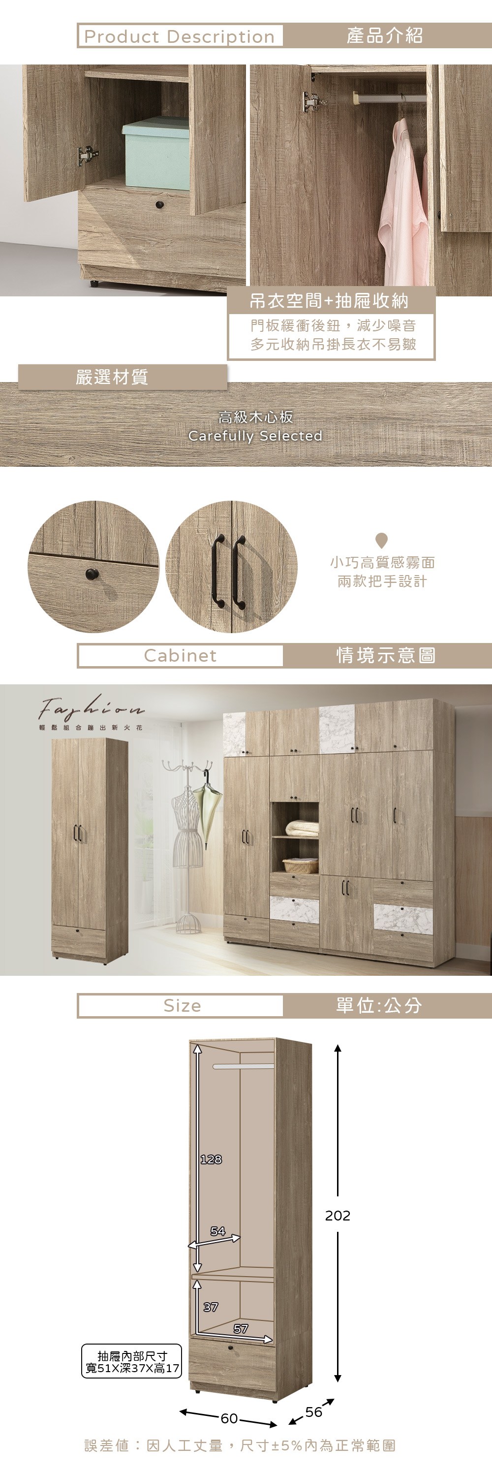 AS雅司 麻衣5*7尺原切衣櫃-145.5*59*194CM