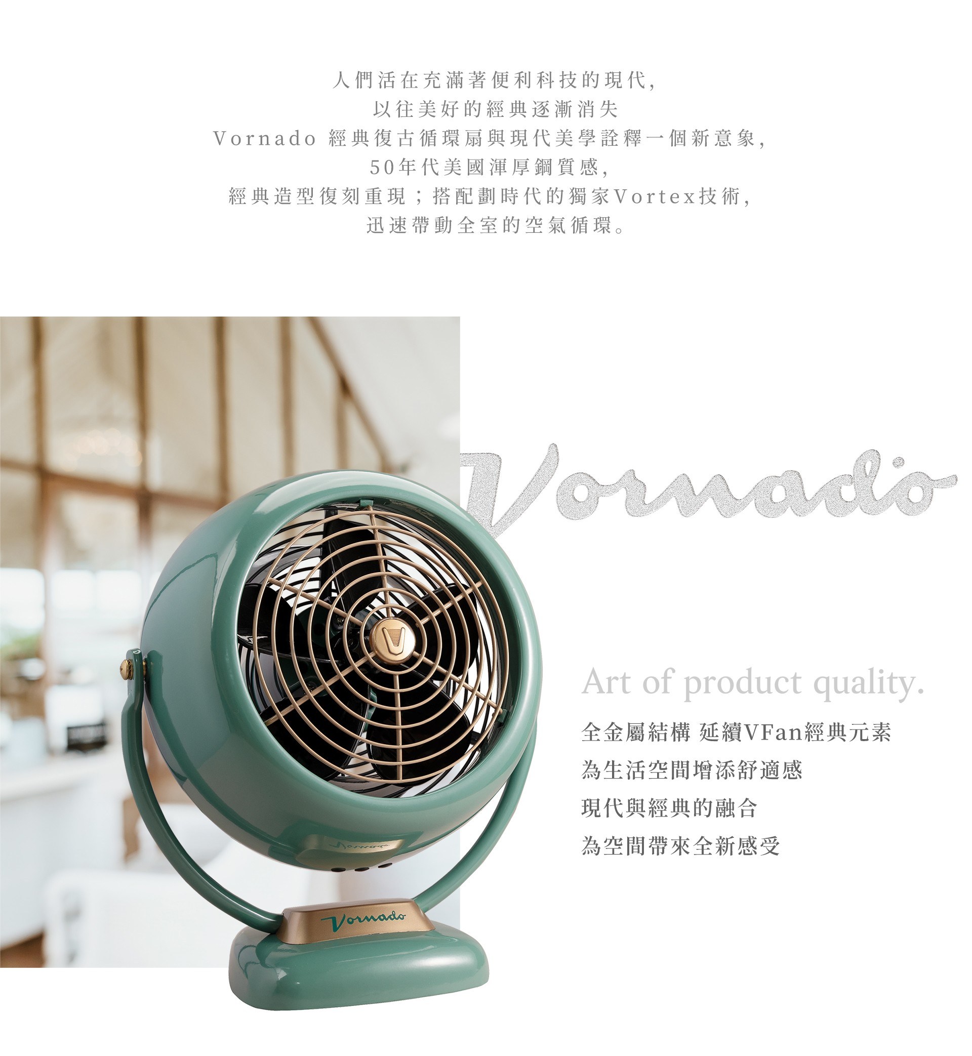VORNADO 沃拿多 奢華鍊金復古扇VFANA22(蒂芬妮綠)