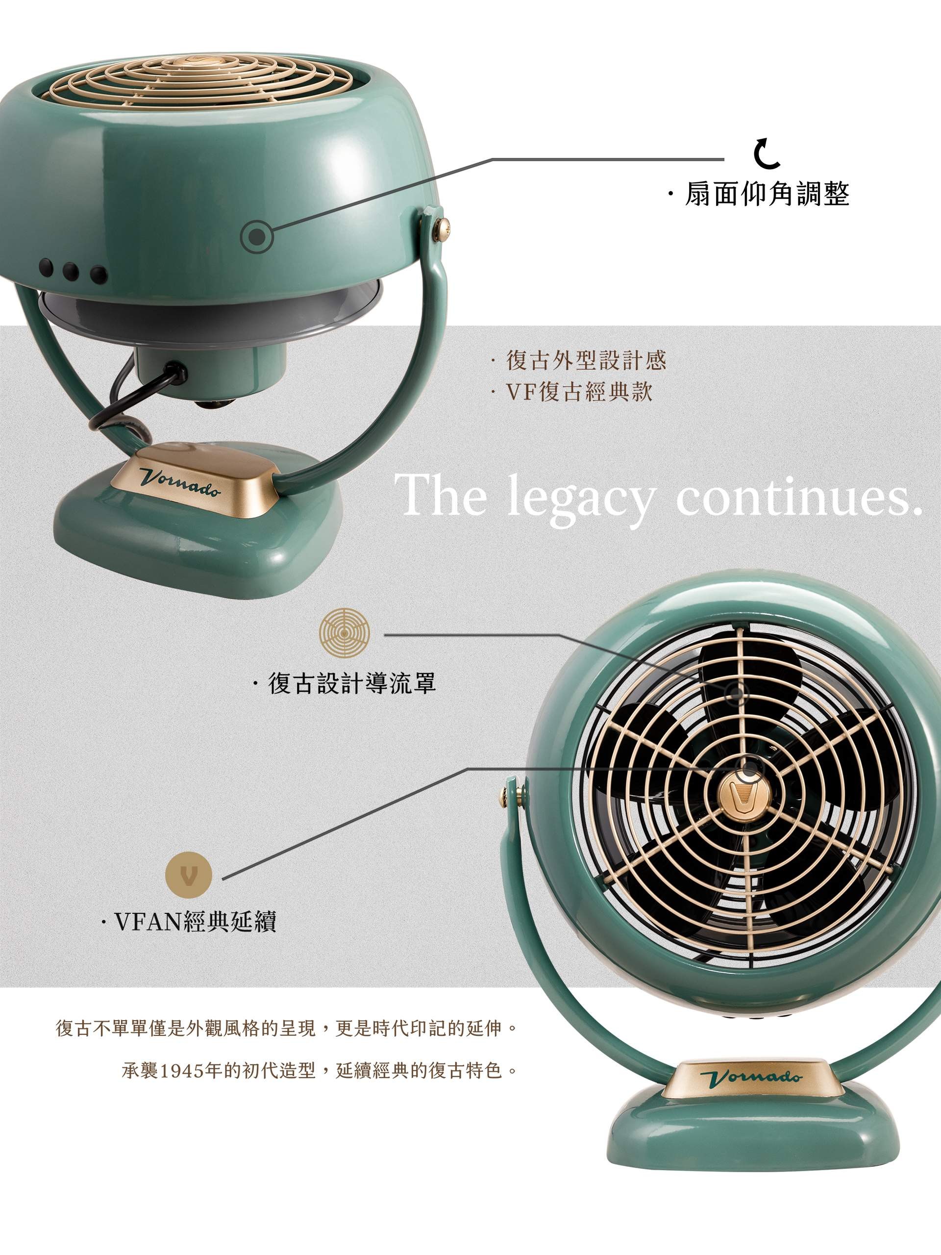VORNADO 沃拿多 奢華鍊金復古扇VFANA22(蒂芬妮綠)