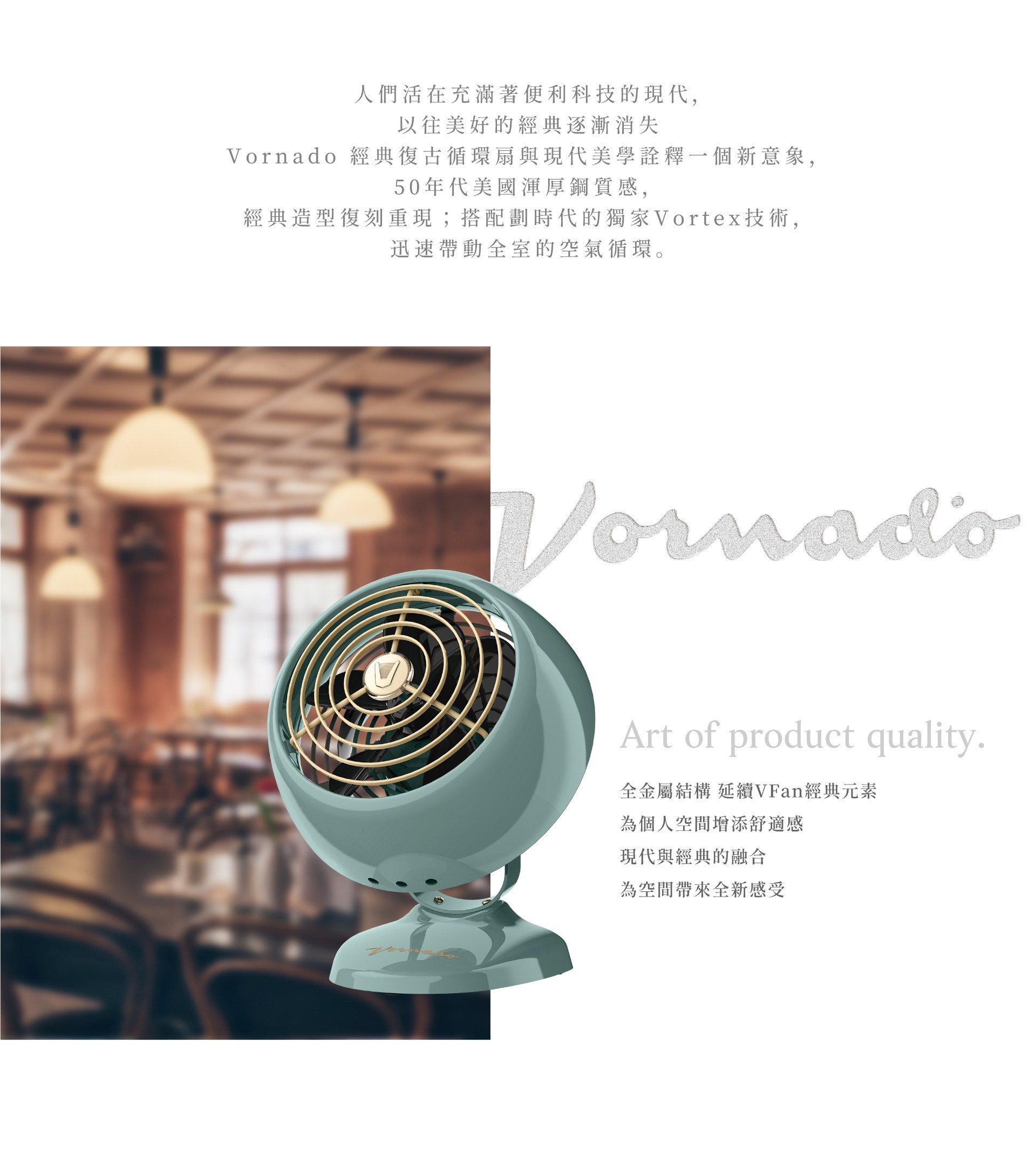 美國VORNADO 沃拿多 奢華鍊金復古扇VFANA22(蒂芬妮綠)