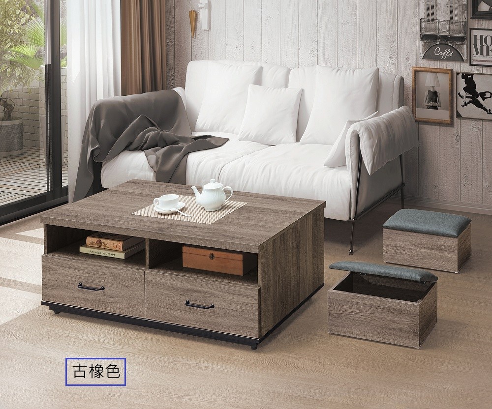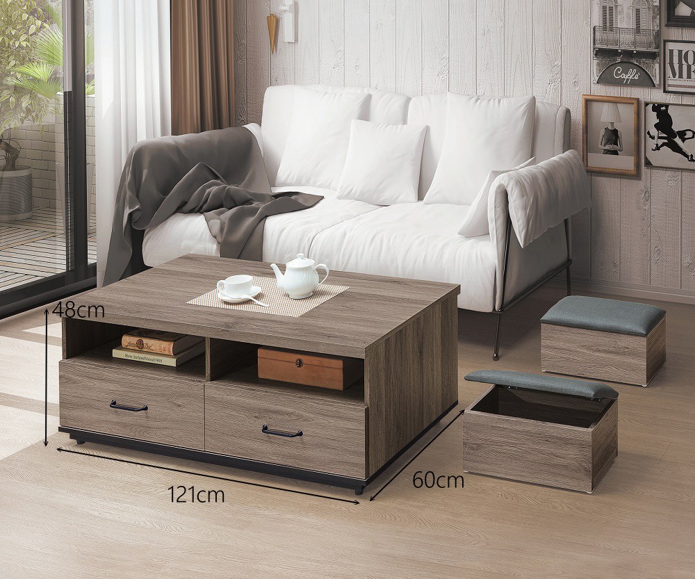 【MUNA 家居】馬克斯4尺木面大茶几(含小凳子X2)(共兩色)原木色