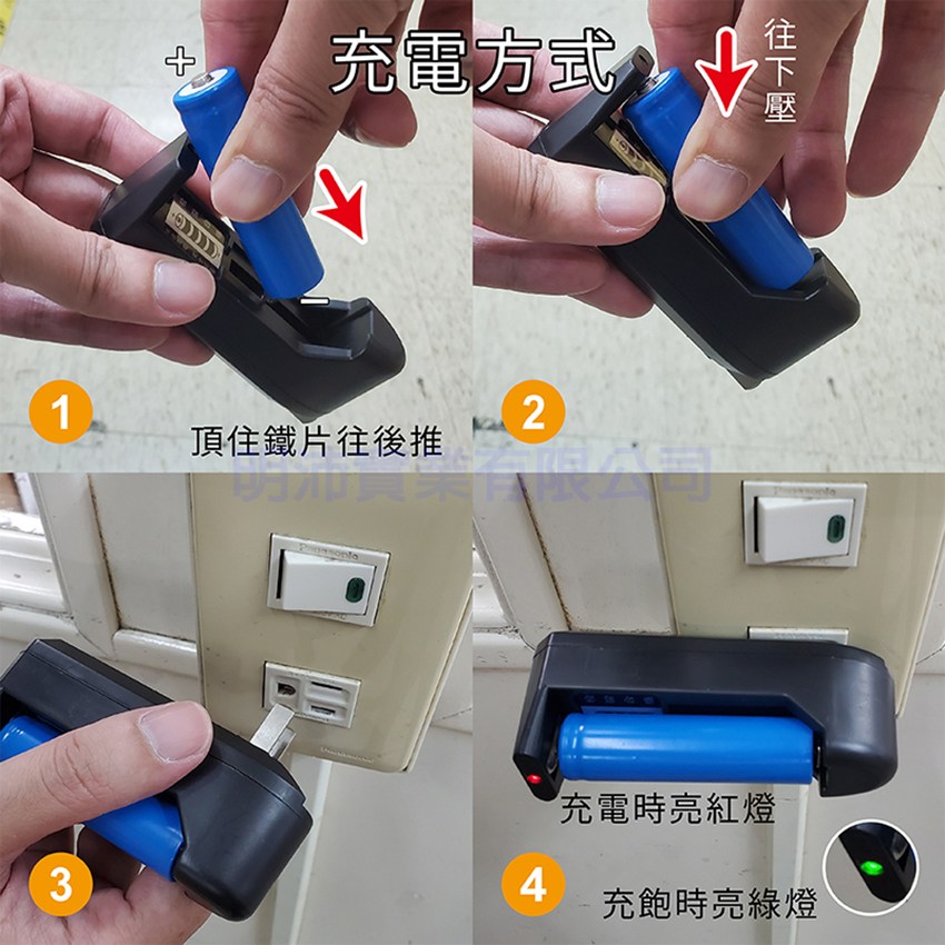 - 使用高儲量18650充電鋰離子電池,隨附插座式充電器1只、專用透明槽1個;當光源暗弱時請即時充電。