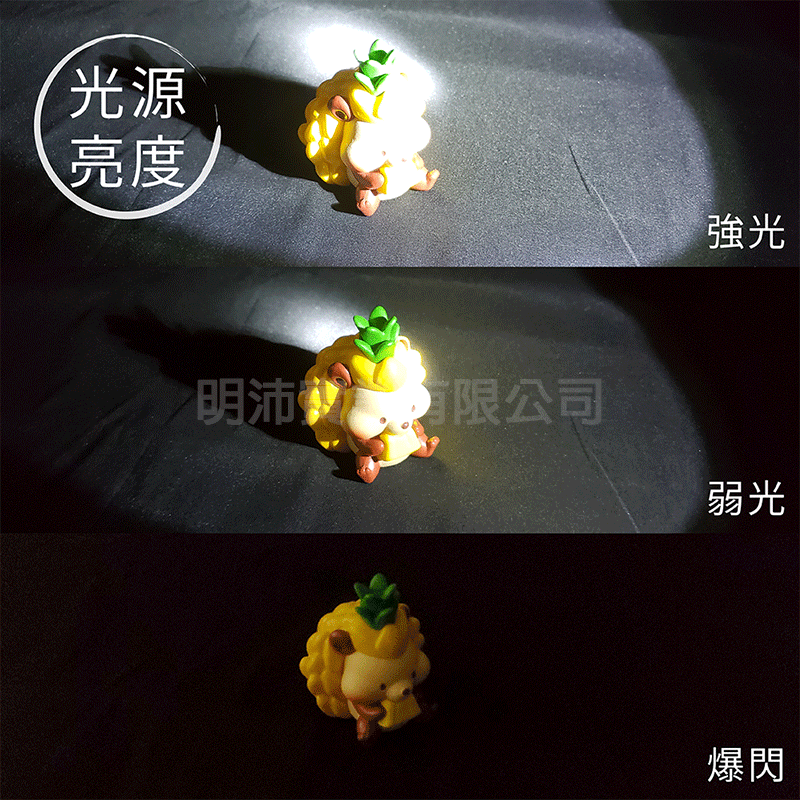 - 超亮度光束,具有強光、弱光、爆閃,三種功能可任意切換。