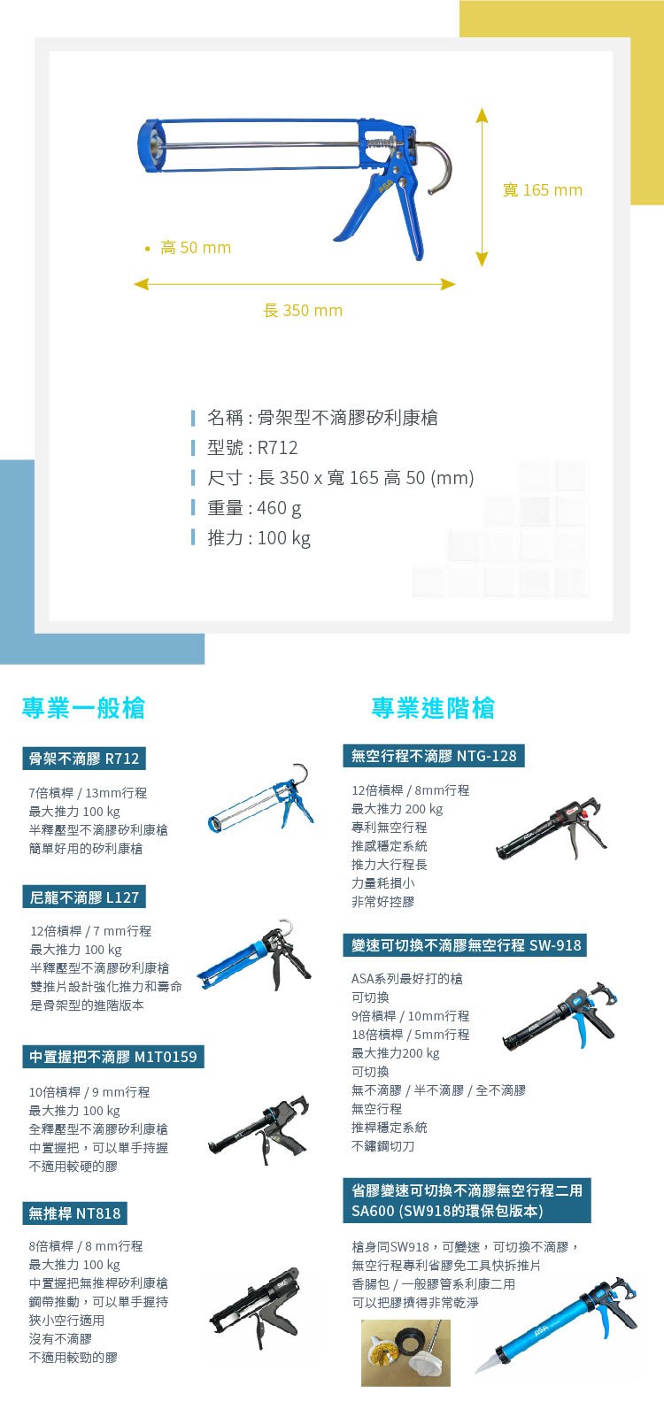 【ASA】骨架型不滴膠矽利康槍 (R712)
