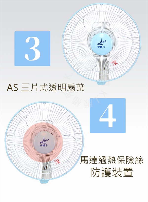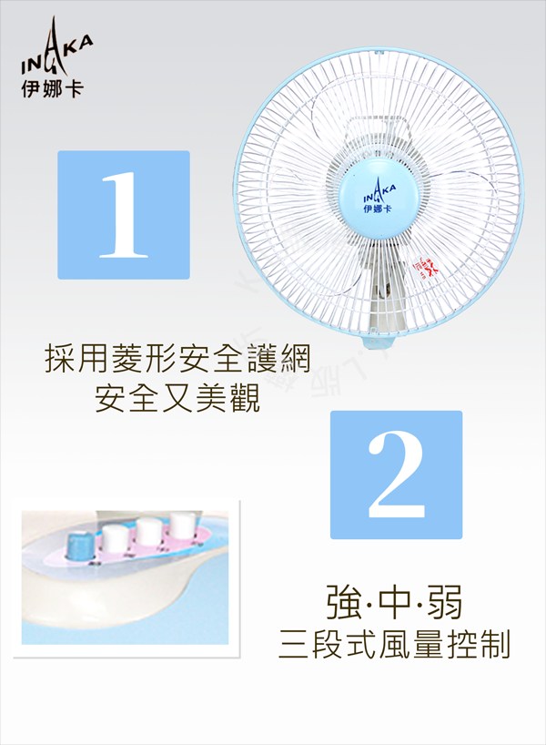 INAKA 伊娜卡 14吋雙拉壁掛扇 具拉線開關選擇風量 控制左右擺頭 ST-1484A