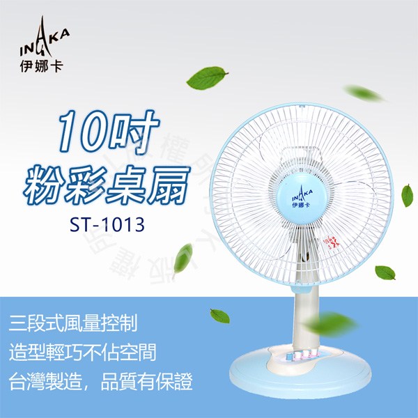 伊娜卡 10吋桌扇 三段風速 五葉片 ST-1013 粉彩