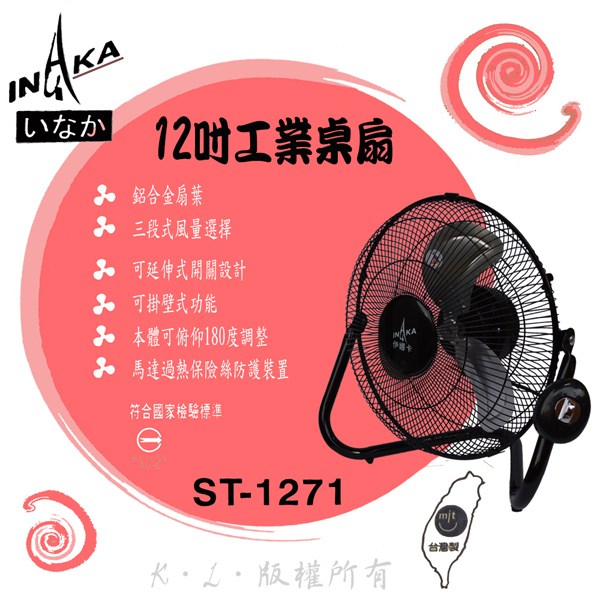 【伊娜卡】12吋工業桌扇 ST-1271
