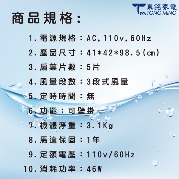 東銘 14吋高級單拉壁扇風扇 TM-1488