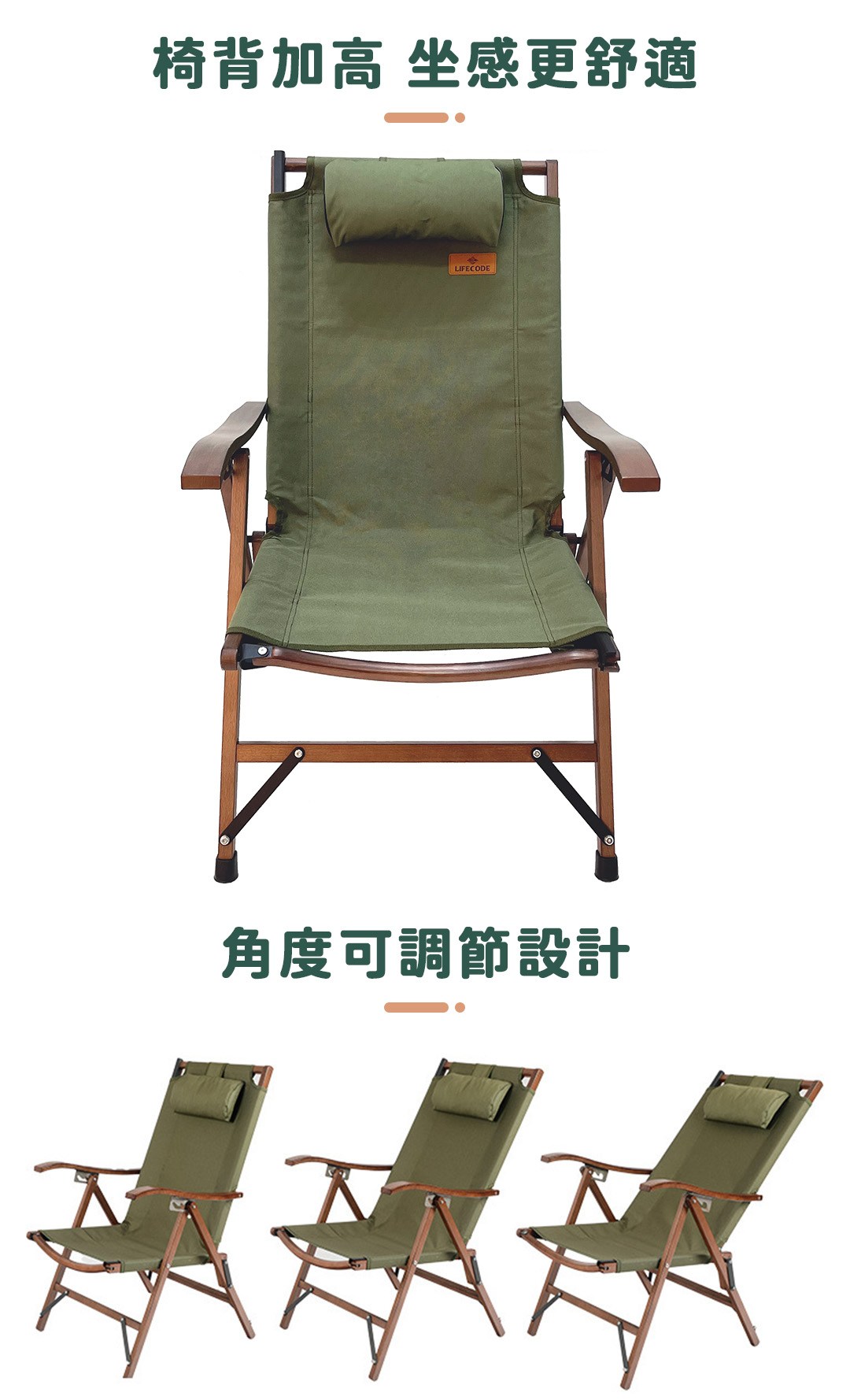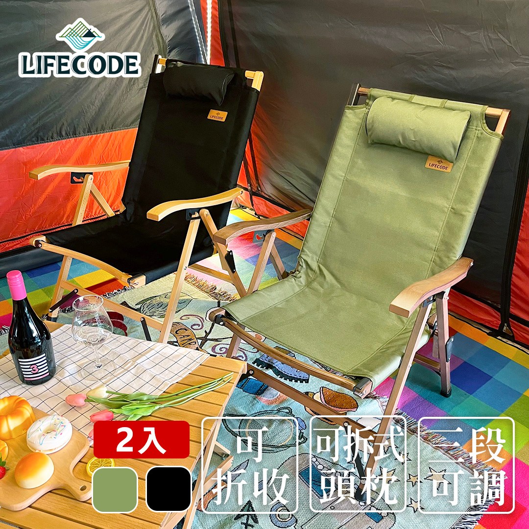 【LIFECODE】可調三段櫸木折疊椅-(2入組)