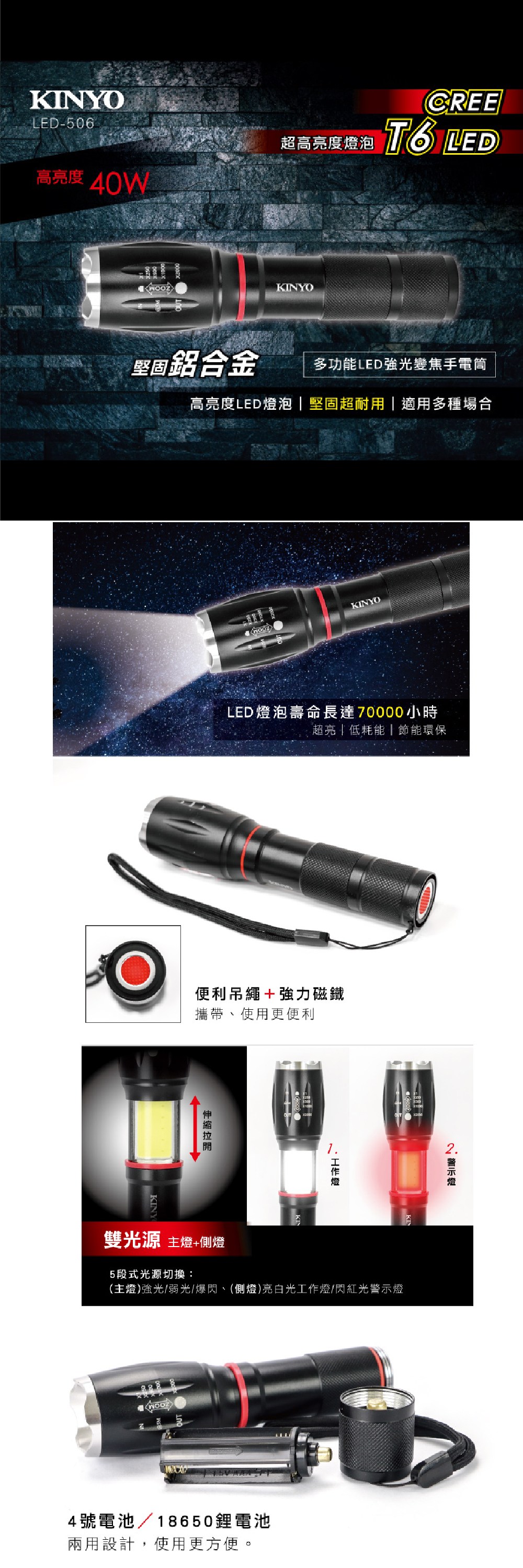 KINYO 大廣角高亮度手電筒 LED-5037(兩入組)
