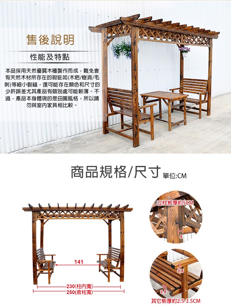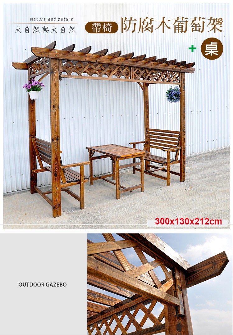 【LOGIS】葡萄架防腐實木涼庭桌椅 戶外庭院 花園景觀椅FFD95-TA