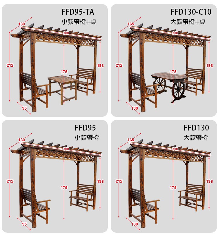LOGIS小葡萄架防腐實木涼庭花架含椅戶外庭院 花園景觀椅FFD95