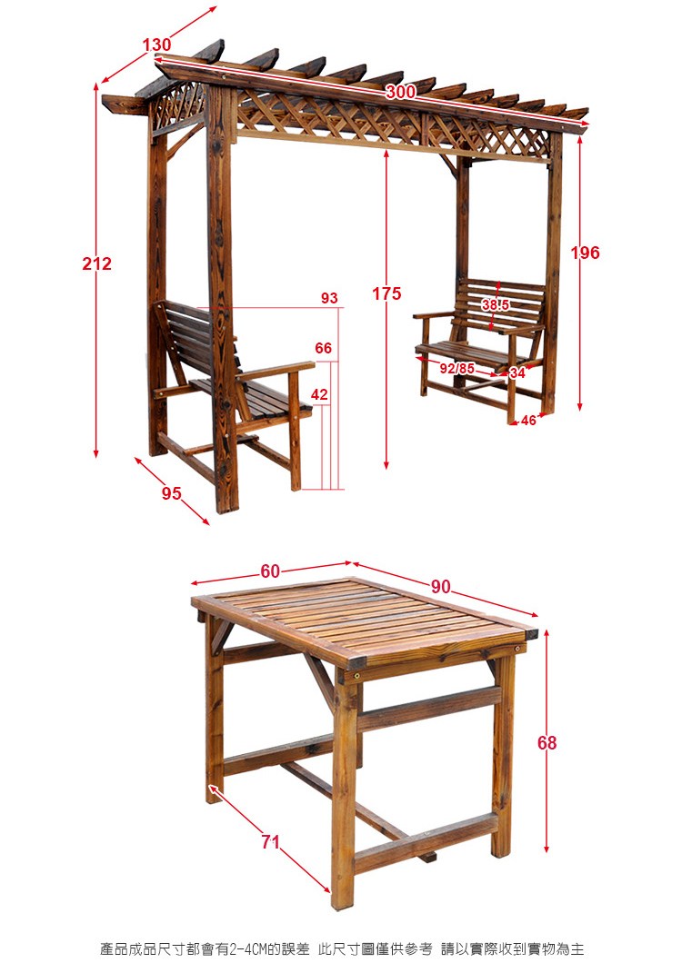 ★天然實木呈現自然工藝美,有天然木節(木結),屬正常現象,並非人造木板平整滑順,經過碳化防腐處理,保留木質獨特花紋(漩渦、波浪紋),如可接受者再下單